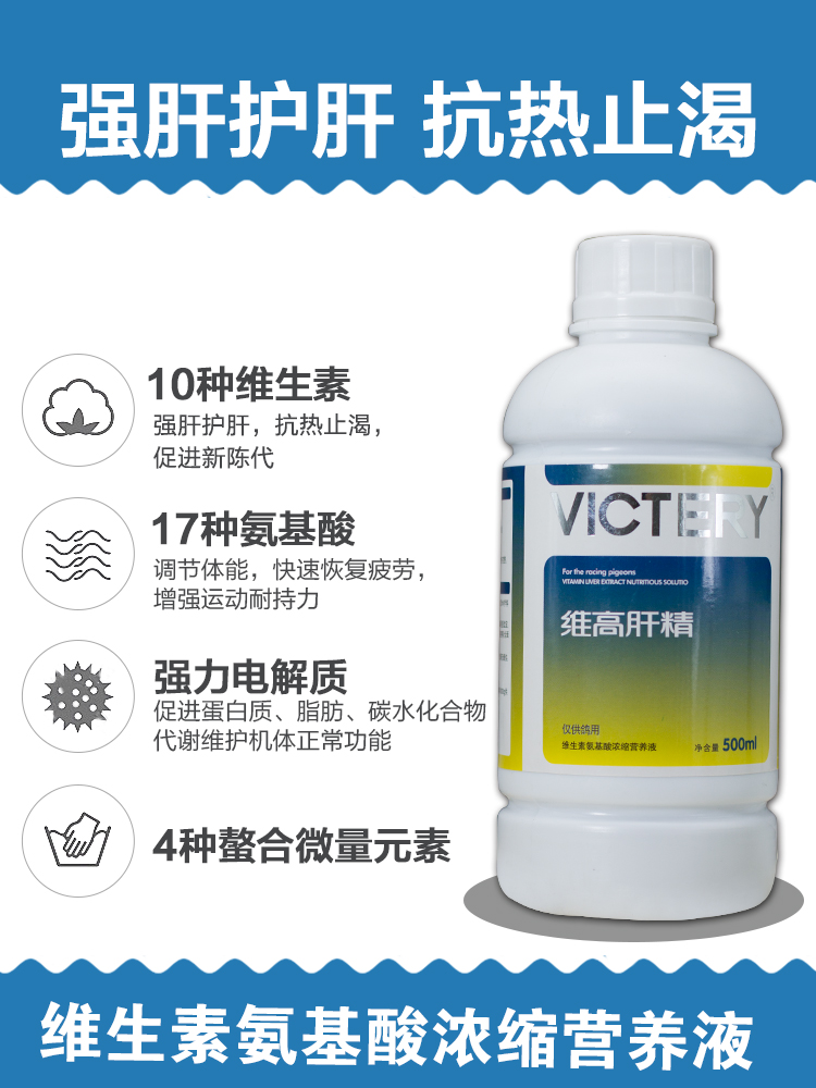 维高肝精 仅供鸽用超强维生素氨基酸营养液本品含10种维生素,17种氨基酸和4种螯合微量元素以及强力电解质,经先进的生物合成技术制成的维生素氨基酸营养液。