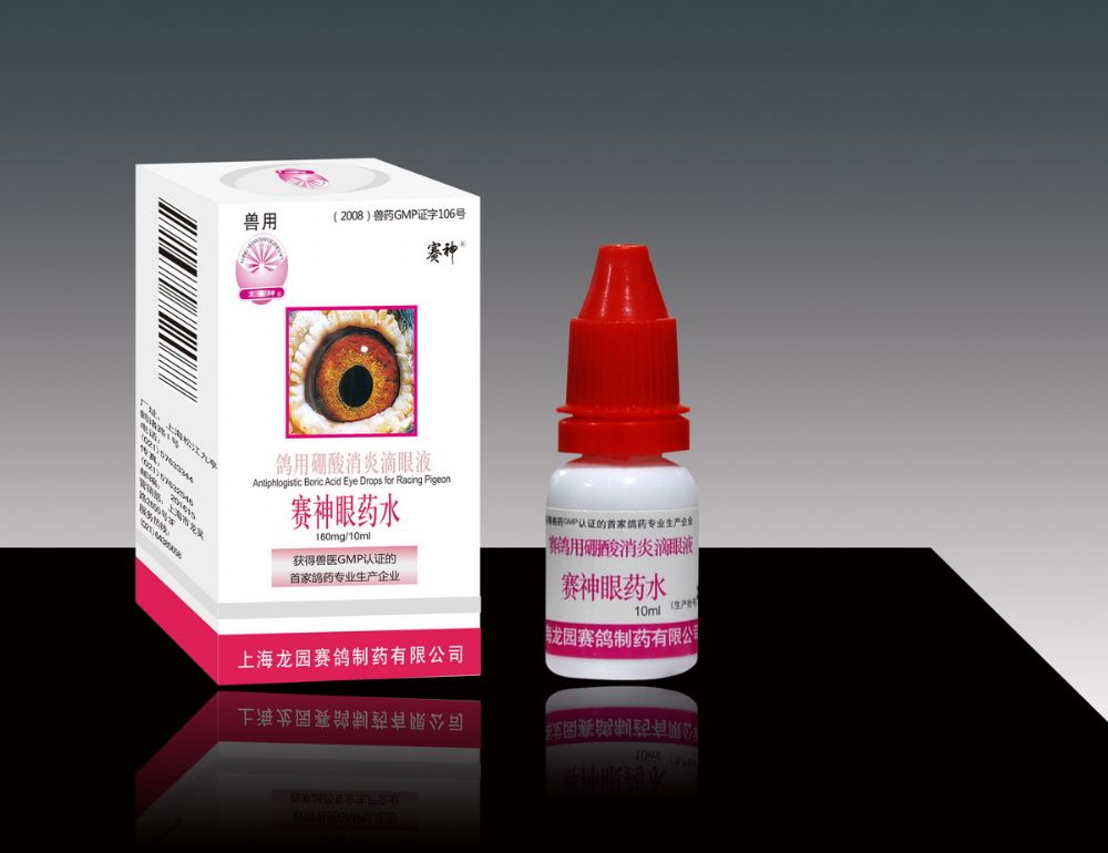 [作用用途] 消炎滴眼液。 治疗鸽眼结合膜炎、眼睑炎、瞬膜炎和多种常见眼病。 具有抗菌、消炎、退肿、收敛、抗毒、抗过敏作用。且消炎、退肿作用明显而持久。 用于训赛过度、紧迫状态下,导致的虹膜(眼砂)色彩褪色、瞬膜水肿、瞬膜下垂等。 调节促进高峰;延迟换羽。