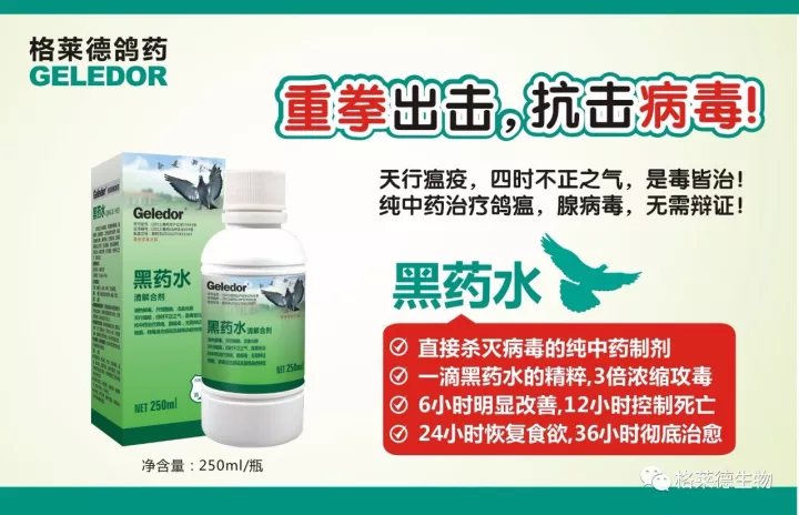 ③最后再使用黑药水饮水,连用3天,彻底杀灭沙门氏菌,防止鸽群复发。