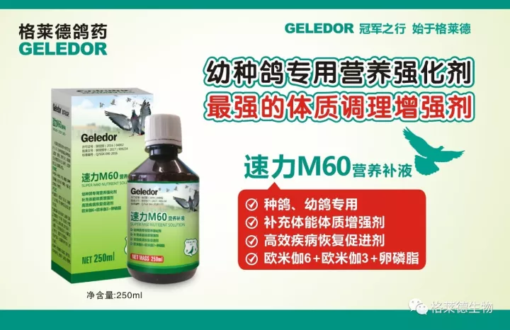 🐣亲鸽使用速力M60营养补液,每天一次,促进鸽乳分泌。