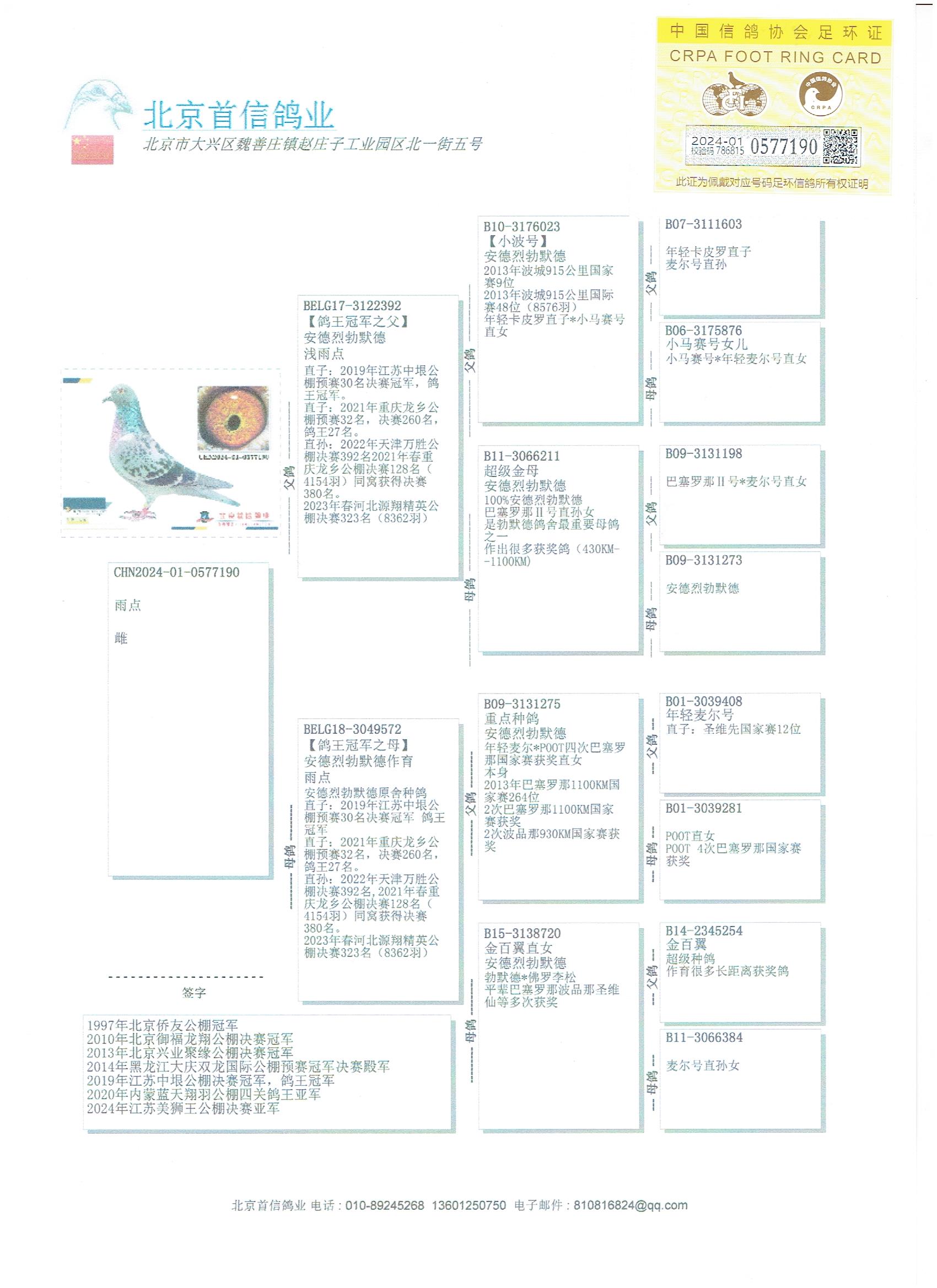 母亲“鸽王冠军之母”为安德烈勃默德原舍作育种鸽