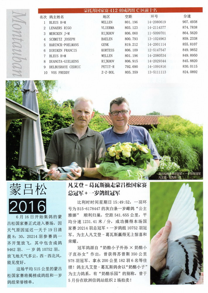 “2016年蒙吕松541公里国家赛20214羽总冠军”兄弟