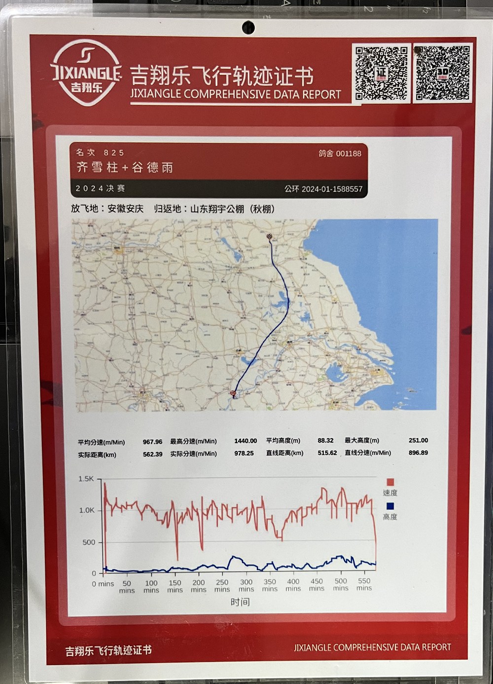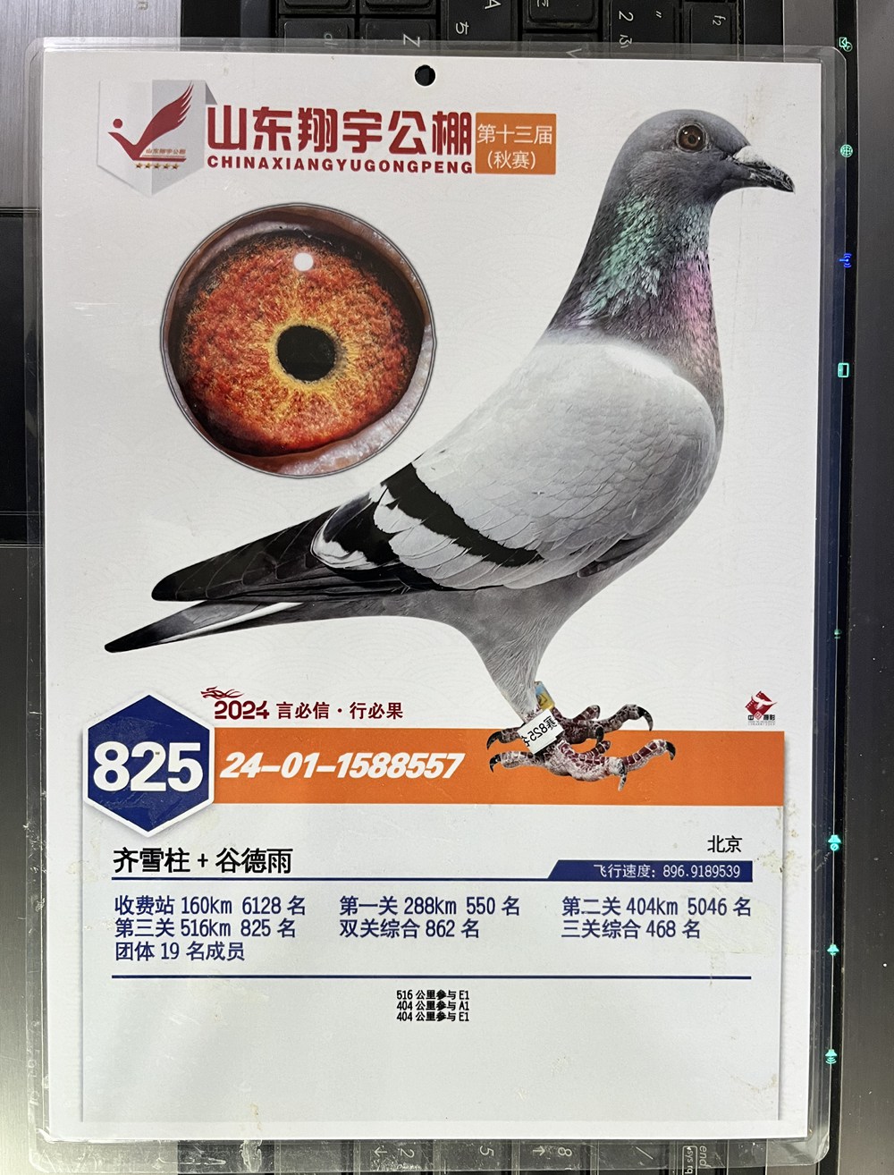 山东翔宇赛鸽公棚516公里决赛825名 雌