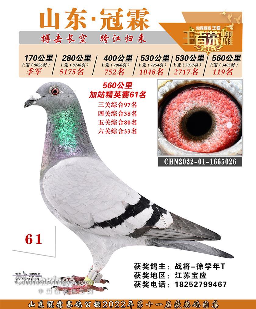22年盖雷国家赛12208羽全国一岁鸽冠军,20583羽总冠军