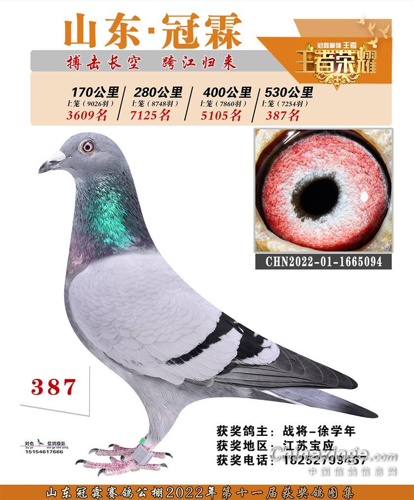 22年盖雷国家赛12208羽全国一岁鸽冠军,20583羽总冠军