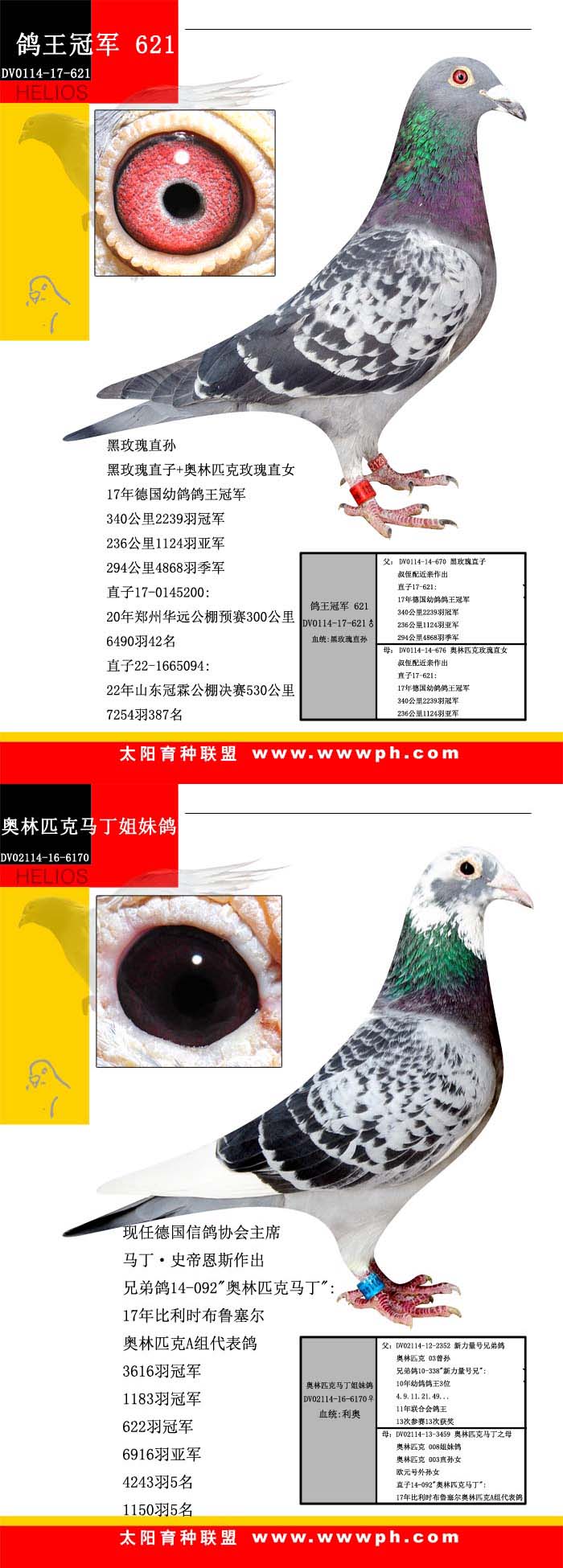 鸽王冠军 621+奥林匹克马丁姐妹鸽