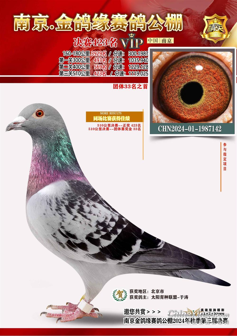 24年南京金鸽缘公棚决赛510公里2230羽423名