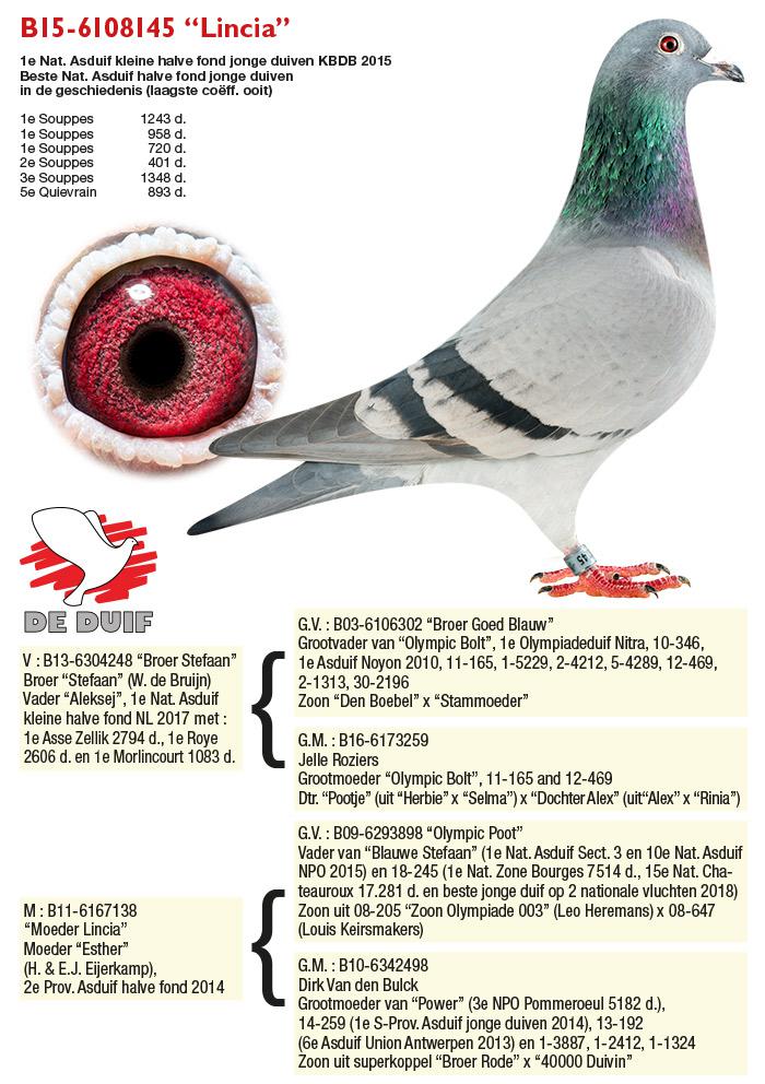 鸽舍主人奥利维尓·盖斯根近十年始终保持全囯鸽王前列: