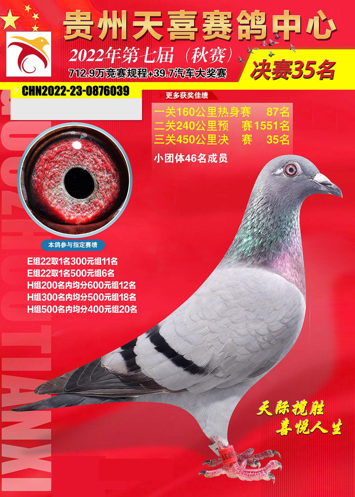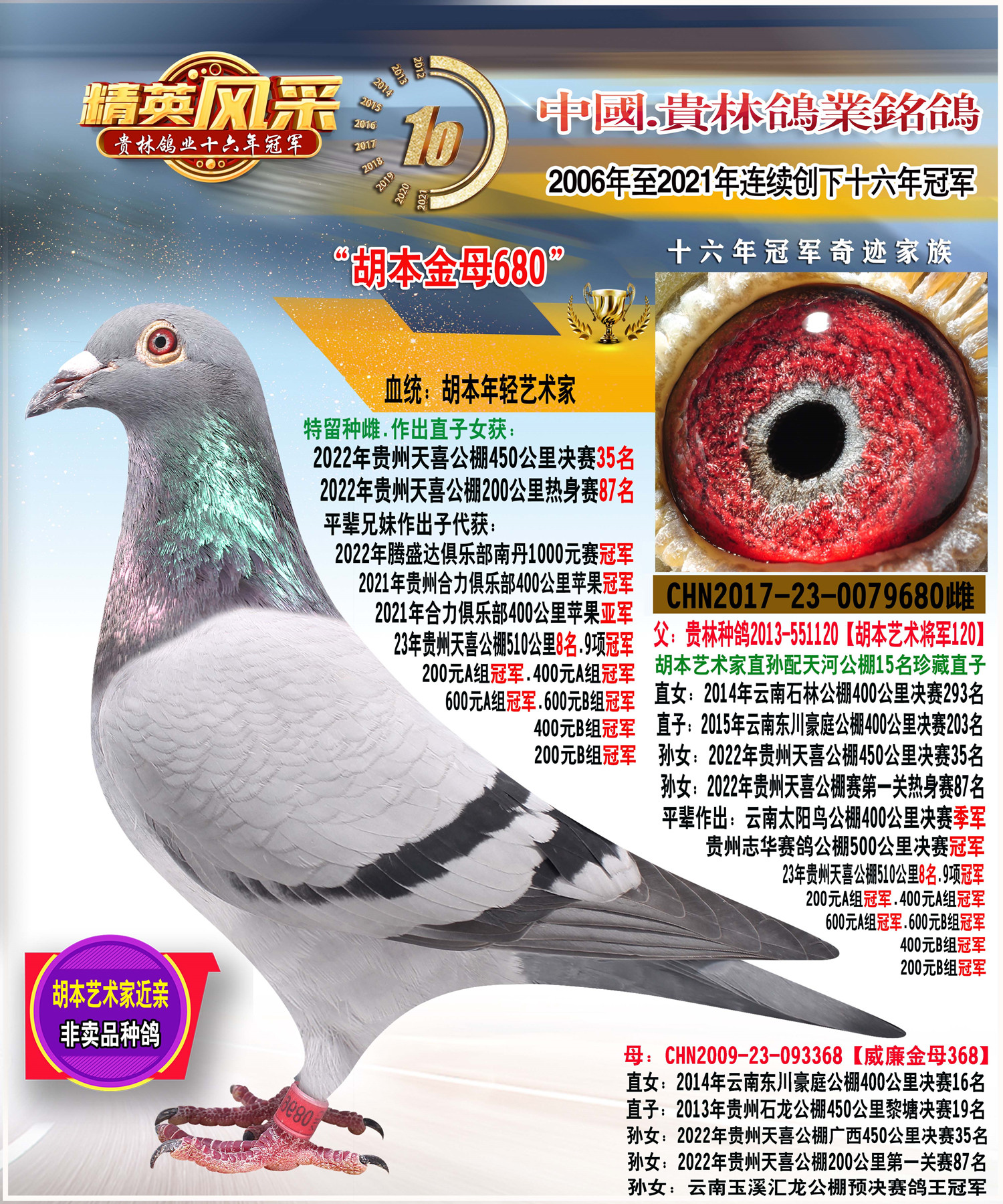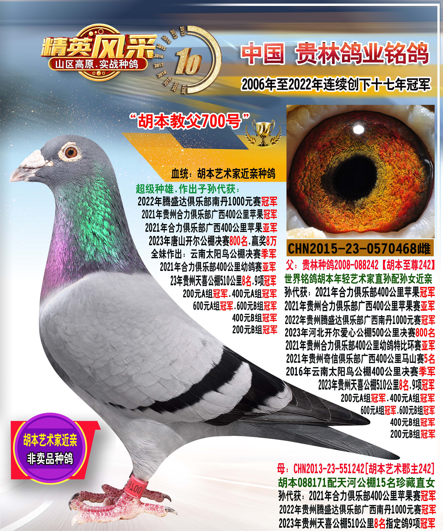 胡本近亲种雄.平辈400公里冠军.500公里冠军多羽