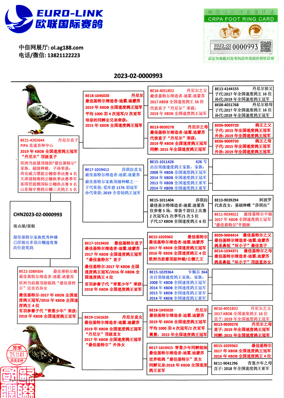 1603956 盖比世界铭鸽“闪电号“近亲回血 ¥6000元 11次