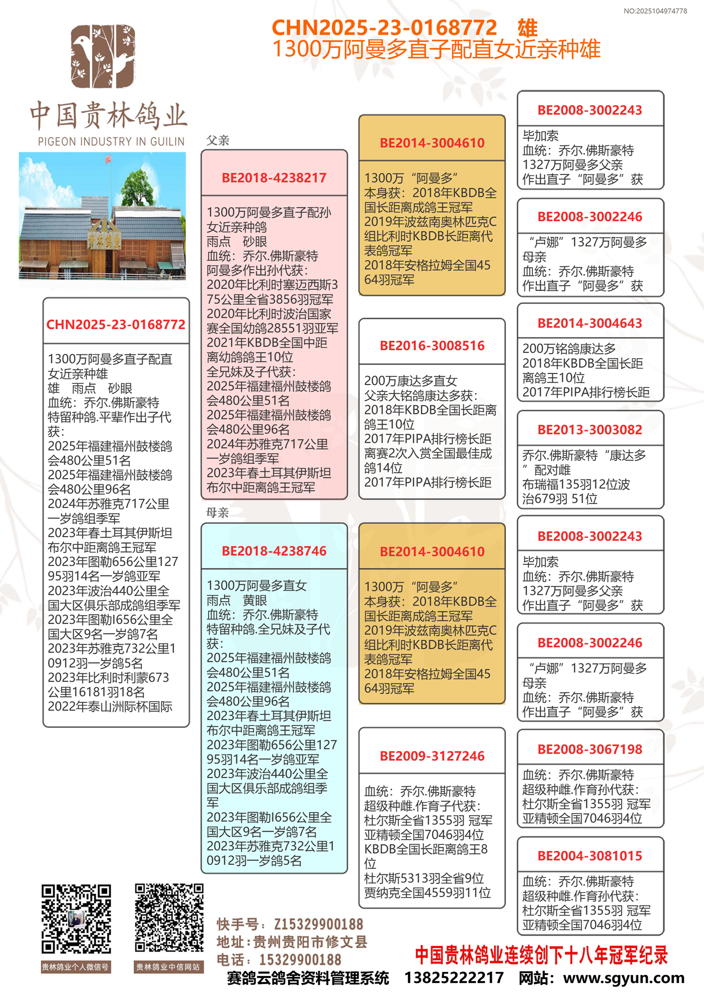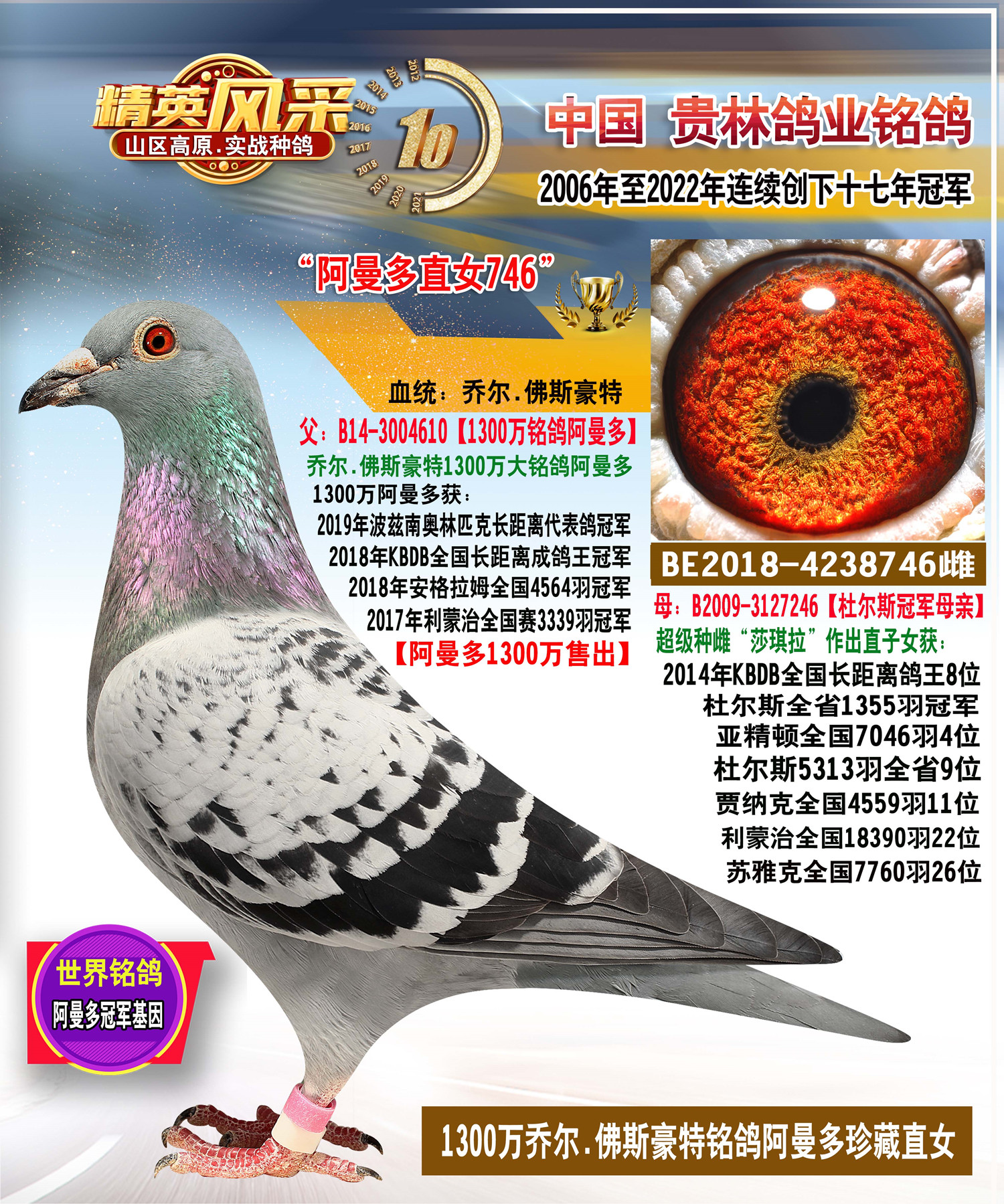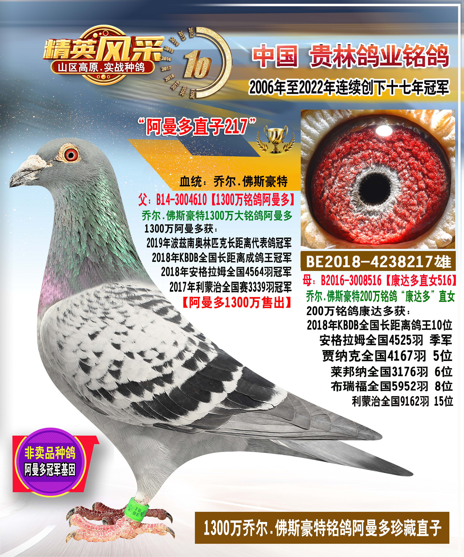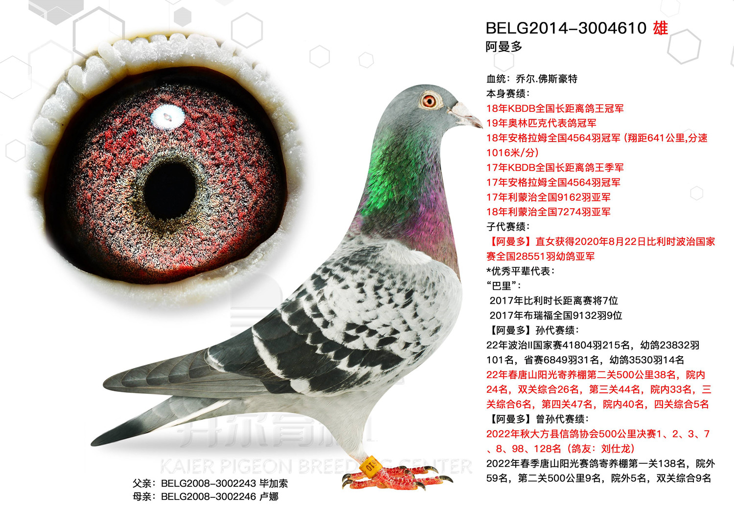 1300万阿曼多直子配阿曼多直女近亲种鸽.平辈作出冠亚军多羽