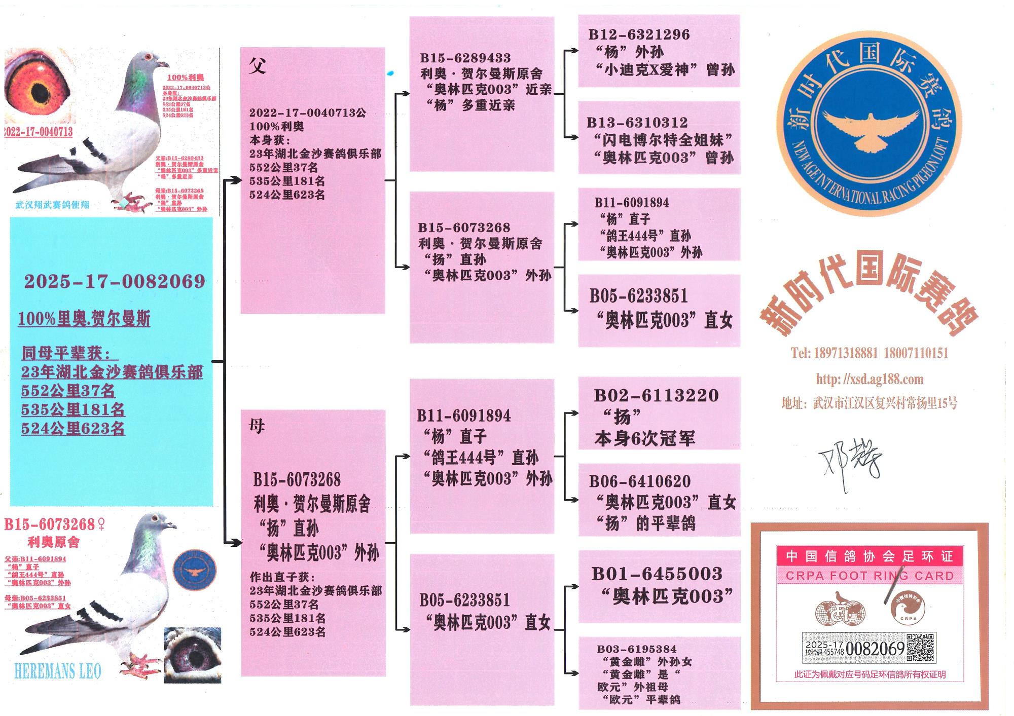 纯种利奥成绩鸽552公里37名x奥林匹克003孙女