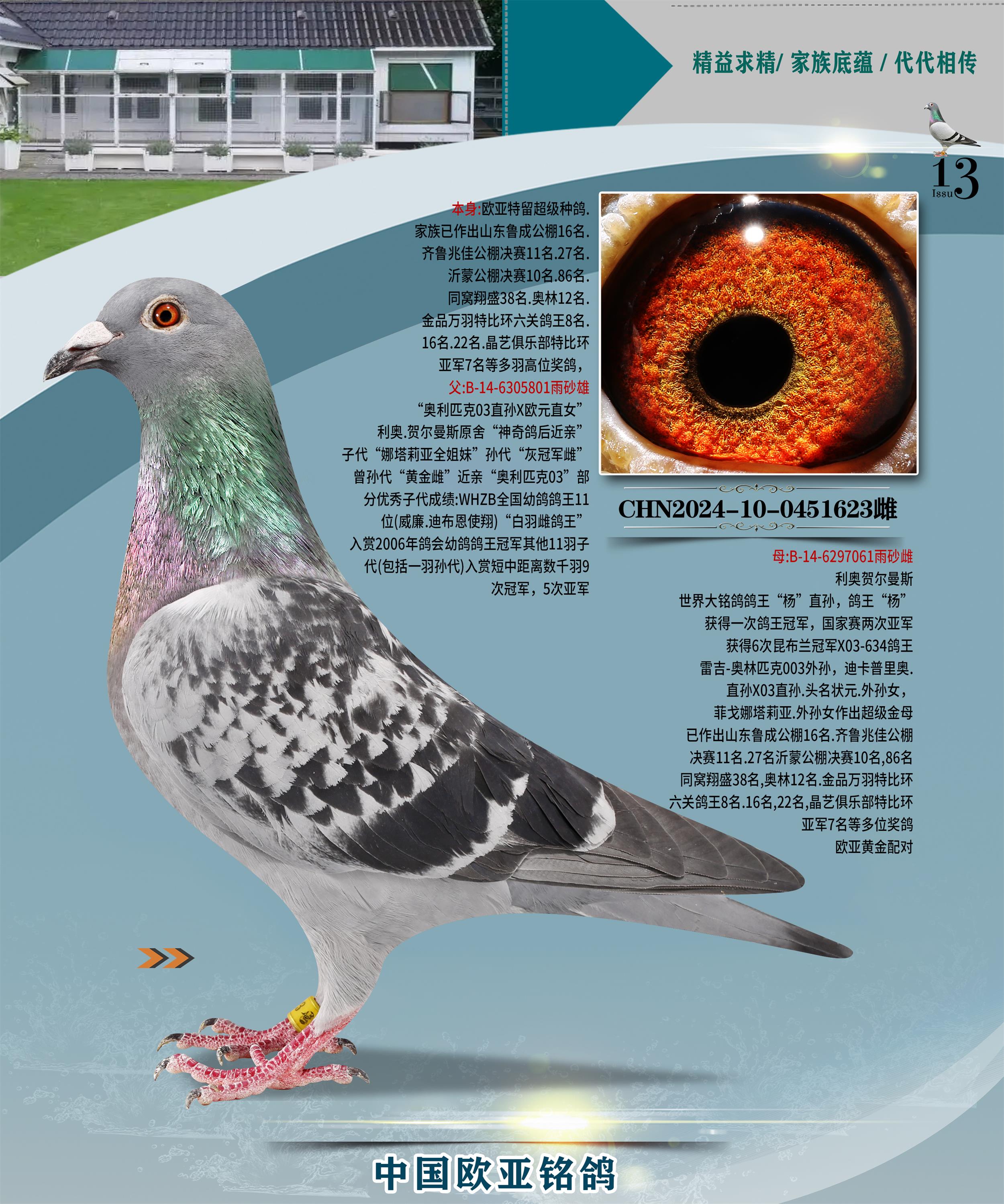 24年秋南京特比环欧亚荣获大团体冠军.小团体冠军551公里大特比13名.14名.16名.19名.20名.21名.24名.26名.27名.28名.42名.52名.54名.57名.65名.66名.68名.70名.71名.72名.74名.76名.80名.82名.83名.84名.85名.86名.90名.92名.110名.116名.121名.122名.128名.131名.158名.161名.164名.165名.166名.172名.174名.177名.182名.195名.196名.201名.205名.208名.210名.216名.253名.269名.275名.276名.294名.296名.299名,,24年秋云南天南铜都公棚决赛415名.天南铜都小棚决赛409名.云南玉活公棚决赛102名.490名.团体32名上笼二羽进二羽,天南铜都大棚506公里决赛445名。热烈祝贺河北省巨鹿县李兰生老师用欧亚泰山号血系连续十一年夺冠军,河北省国家赛冠军.全国季军等多次前十名高位,扬州王军王总用欧亚利奥24年春季获山东翔宇公棚决赛33名盖比53名。南京刘正龙刘总用欧亚盖比获得24年秋山东潍坊国际公棚决赛42名.精英赛30名.三关鸽王71名.决赛86名.加站赛16名.南京市特比环A组鸽王9名.B组鸽王5名.6名.C组鸽王5名.精英赛冠军4名.技能赛A组冠军4名.5名.秦淮区特比环荣获15名.46名.48名.87名。四川西昌徐亮徐总用欧亚利奥获得凉山州聚友决赛177名.第二关亚军双关鸽王19名.三关鸽王105名.云南豪庭公棚决赛603名。热烈祝贺24年四川重庆翔园鸽舍用欧亚泰山号荣获春季400公里冠军.秋季500公里冠军,河北王总用詹森X利奥获得千羽千翔公棚400公里冠军,广东蔡楷焕荣获24年秋爱好者 赛鸽俱乐部三关鸽王季军.一关420公里99名.二关450公里11名.三关520公里32名.单关季军.7名.12名,江西李卫兴荣获贵州红枫公棚8名.共翔俱乐部寄养棚四关综合鸽王30名.一关400公里78名.二关500公里55名.三关520公里37名.四关500公里57名.同父母获公棚18名.雷鸣获得武汉黄浦育翔中心冠军,四川陈文获得四川明鸿俱乐部300公里梦幻2名.3名.4名.9名.10名.13名.14名.15名.31名.34名.40名.41名.42名.43名.69名.71名.72名.73名.74名.94名.95名.97名.98名.99名.419公里决赛荣获总冠军7名.总共归巢9羽,四川徐亮获豪庭决赛603名,山西郑勇获得山西泰鑫公棚决赛255名詹森红狐,热烈祝贺马总获得开尔(飞跃队)决赛9名获奖金1310000万元.第一关52名,天津津福资赛180公里96名.获奖金429543万元,欧亚支持全国鸽友24年秋多人报喜 祝大家取得更好成绩,给欧亚报喜鸽友欧亚决定给每人赠送一羽超级种鸽。欧亚俱乐部特比环多关鸽王成绩:15年秋淮安特比环黑色星期一全会上笼9700多羽,当天无鸽归巢,第二天全会归巢357羽,本舍归巢158羽.前十名八羽.前一百名归巢57羽,16年春季获五关鸽王总冠军,总亚军四名.六名.七名.九名.十名.晶艺俱乐部520公里冠亚季军5名.6名.7名.9名.11名等,火车头冠军.季军6名.8名.9名.10名,16年秋晶艺俱乐部特比环520公里亚军.季军4名.6名.7名.9名,15年春南京白下特比环冠军.亚军.季军6名.7名.8名.9名.10名.指定鸽A B组获得冠军.亚军.季军4名.5名.,17年淮安特比环亚军.4名.5名.7名.8名.10名.六关鸽王总冠军.4名.6名.9名.10名,寄养棚宿迁刘总20羽特比环获冠军.季军.4名.7名.8名.9名等。18年荣获万羽特比环六关鸽王总冠军.总亚军.总季军.6名.8名.十名.单关四羽冠军.二羽亚军.四羽季军.前十名27羽。19年秋万羽特比环六关鸽王总亚军.总季军.5名.8名等,单关二羽冠军.三羽亚军.一羽季军前十名31羽。20年秋淮安市鸽会四关特比环大赛风雨无阻鸽王亚军.鸽王六名,金品俱乐部万羽特比环六关鸽王总冠军,总亚军.四名.五名.六名.七名.八名.十名.前二百名鸽王35羽,单关冠亚季军前十名四十多羽,火车头五关鸽王季军.六名.八名.前二百名鸽王十七羽。20年春荣获淮安五区一市四关鸽王总冠军.亚军.四名.八名.九名。21年秋荣获金品万羽特比环大赛六关鸽王总亚军.总季军.四名.七名.九名.十名.单关冠亚军季军前十名三十多羽。火车头协会鸽王六名.七名.十名.单关前十名十七羽。22年秋荣获鸽王总冠军.总亚军.5名.7名.8名.9名.11名.单关冠亚季军前十名三十多羽,第一关单关前二百名四十多羽,第二关前二百名三十多羽,第三关前二百名四十多羽,第四关前二百名四十多羽,第五关前一百名53羽。23年秋荣获鸽王季军.五名.八名.十名.13名.17名.20名.27名等多羽鸽王.单关前十名二十多羽。公棚.寄养棚部分成绩:16年秋宁夏黄河公棚总冠军电脑戈马力指定通炮冠军,17年送八羽参赛获得鸽王八名进奖四名,支持韩总荣获八名。支持鸽友荣获宁夏中卫公棚决赛总冠军.精英赛冠军,支持18年宁夏黄河公棚决赛冠军詹森X泰山。安徽鼎博寄养棚院内外四关鸽王总冠军.鸽王十七名.三十七名同窝,鸽王39名.42名.58名.67名。18年山东公棚预赛冠军.决赛65名.送八羽进奖五羽.指定获奔驰汽车一辆。支持鸽友获得云南蓝云公棚冠军.盖比X佛卡门。支持鸽友荣获云南银集公棚决赛冠军 詹森427X520血系 速度赛6700羽冠军。17年荣获金马俱乐部寄养棚四关鸽王总冠军.季军.六名.八名.第一关冠军.亚军.季军四名.七名.十一名.金牌教练奖。支持鸽友18年北京费翔公棚预赛九名电脑X桑杰士,支持鸽友荣获陕西威力公棚决赛11名.内蒙古临河寄养棚四关鸽王六名.詹森配泰山,支持河北王总用欧亚詹森427配胡本喜获20年秋开尔青年棚季军。云南东荣公棚16年预赛冠军.决赛77名.17年决赛12名.詹森红狐X泰山,17年平安公棚决赛4名 詹森427。欧亚获得21年金母寄养棚第一关四名.第二关5名.第三关5名.6名.7名.10名.三关鸽王总冠军,四关鸽王14名.十羽鸽王。支持河