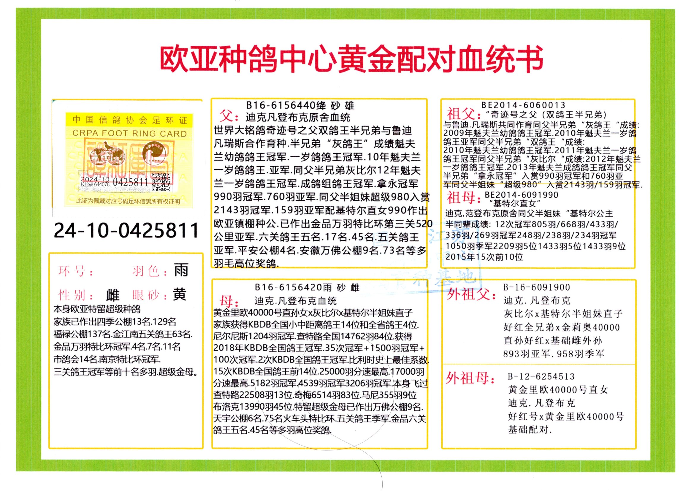 24年秋南京特比环欧亚荣获大团体冠军.小团体冠军551公里大特比13名.14名.16名.19名.20名.21名.24名.26名.27名.28名.42名.52名.54名.57名.65名.66名.68名.70名.71名.72名.74名.76名.80名.82名.83名.84名.85名.86名.90名.92名.110名.116名.121名.122名.128名.131名.158名.161名.164名.165名.166名.172名.174名.177名.182名.195名.196名.201名.205名.208名.210名.216名.253名.269名.275名.276名.294名.296名.299名,,24年秋云南天南铜都公棚决赛415名.天南铜都小棚决赛409名.云南玉活公棚决赛102名.490名.团体32名上笼二羽进二羽,天南铜都大棚506公里决赛445名。热烈祝贺河北省巨鹿县李兰生老师用欧亚泰山号血系连续十一年夺冠军,河北省国家赛冠军.全国季军等多次前十名高位,扬州王军王总用欧亚利奥24年春季获山东翔宇公棚决赛33名盖比53名。南京刘正龙刘总用欧亚盖比获得24年秋山东潍坊国际公棚决赛42名.精英赛30名.三关鸽王71名.决赛86名.加站赛16名.南京市特比环A组鸽王9名.B组鸽王5名.6名.C组鸽王5名.精英赛冠军4名.技能赛A组冠军4名.5名.秦淮区特比环荣获15名.46名.48名.87名。四川西昌徐亮徐总用欧亚利奥获得凉山州聚友决赛177名.第二关亚军双关鸽王19名.三关鸽王105名.云南豪庭公棚决赛603名。热烈祝贺24年四川重庆翔园鸽舍用欧亚泰山号荣获春季400公里冠军.秋季500公里冠军,河北王总用詹森X利奥获得千羽千翔公棚400公里冠军,广东蔡楷焕荣获24年秋爱好者 赛鸽俱乐部三关鸽王季军.一关420公里99名.二关450公里11名.三关520公里32名.单关季军.7名.12名,江西李卫兴荣获贵州红枫公棚8名.共翔俱乐部寄养棚四关综合鸽王30名.一关400公里78名.二关500公里55名.三关520公里37名.四关500公里57名.同父母获公棚18名.雷鸣获得武汉黄浦育翔中心冠军,四川陈文获得四川明鸿俱乐部300公里梦幻2名.3名.4名.9名.10名.13名.14名.15名.31名.34名.40名.41名.42名.43名.69名.71名.72名.73名.74名.94名.95名.97名.98名.99名.419公里决赛荣获总冠军7名.总共归巢9羽,四川徐亮获豪庭决赛603名,山西郑勇获得山西泰鑫公棚决赛255名詹森红狐,热烈祝贺马总获得开尔(飞跃队)决赛9名获奖金1310000万元.第一关52名,天津津福资赛180公里96名.获奖金429543万元,欧亚支持全国鸽友24年秋多人报喜 祝大家取得更好成绩,给欧亚报喜鸽友欧亚决定给每人赠送一羽超级种鸽。欧亚俱乐部特比环多关鸽王成绩:15年秋淮安特比环黑色星期一全会上笼9700多羽,当天无鸽归巢,第二天全会归巢357羽,本舍归巢158羽.前十名八羽.前一百名归巢57羽,16年春季获五关鸽王总冠军,总亚军四名.六名.七名.九名.十名.晶艺俱乐部520公里冠亚季军5名.6名.7名.9名.11名等,火车头冠军.季军6名.8名.9名.10名,16年秋晶艺俱乐部特比环520公里亚军.季军4名.6名.7名.9名,15年春南京白下特比环冠军.亚军.季军6名.7名.8名.9名.10名.指定鸽A B组获得冠军.亚军.季军4名.5名.,17年淮安特比环亚军.4名.5名.7名.8名.10名.六关鸽王总冠军.4名.6名.9名.10名,寄养棚宿迁刘总20羽特比环获冠军.季军.4名.7名.8名.9名等。18年荣获万羽特比环六关鸽王总冠军.总亚军.总季军.6名.8名.十名.单关四羽冠军.二羽亚军.四羽季军.前十名27羽。19年秋万羽特比环六关鸽王总亚军.总季军.5名.8名等,单关二羽冠军.三羽亚军.一羽季军前十名31羽。20年秋淮安市鸽会四关特比环大赛风雨无阻鸽王亚军.鸽王六名,金品俱乐部万羽特比环六关鸽王总冠军,总亚军.四名.五名.六名.七名.八名.十名.前二百名鸽王35羽,单关冠亚季军前十名四十多羽,火车头五关鸽王季军.六名.八名.前二百名鸽王十七羽。20年春荣获淮安五区一市四关鸽王总冠军.亚军.四名.八名.九名。21年秋荣获金品万羽特比环大赛六关鸽王总亚军.总季军.四名.七名.九名.十名.单关冠亚军季军前十名三十多羽。火车头协会鸽王六名.七名.十名.单关前十名十七羽。22年秋荣获鸽王总冠军.总亚军.5名.7名.8名.9名.11名.单关冠亚季军前十名三十多羽,第一关单关前二百名四十多羽,第二关前二百名三十多羽,第三关前二百名四十多羽,第四关前二百名四十多羽,第五关前一百名53羽。23年秋荣获鸽王季军.五名.八名.十名.13名.17名.20名.27名等多羽鸽王.单关前十名二十多羽。公棚.寄养棚部分成绩:16年秋宁夏黄河公棚总冠军电脑戈马力指定通炮冠军,17年送八羽参赛获得鸽王八名进奖四名,支持韩总荣获八名。支持鸽友荣获宁夏中卫公棚决赛总冠军.精英赛冠军,支持18年宁夏黄河公棚决赛冠军詹森X泰山。安徽鼎博寄养棚院内外四关鸽王总冠军.鸽王十七名.三十七名同窝,鸽王39名.42名.58名.67名。18年山东公棚预赛冠军.决赛65名.送八羽进奖五羽.指定获奔驰汽车一辆。支持鸽友获得云南蓝云公棚冠军.盖比X佛卡门。支持鸽友荣获云南银集公棚决赛冠军 詹森427X520血系 速度赛6700羽冠军。17年荣获金马俱乐部寄养棚四关鸽王总冠军.季军.六名.八名.第一关冠军.亚军.季军四名.七名.十一名.金牌教练奖。支持鸽友18年北京费翔公棚预赛九名电脑X桑杰士,支持鸽友荣获陕西威力公棚决赛11名.内蒙古临河寄养棚四关鸽王六名.詹森配泰山,支持河北王总用欧亚詹森427配胡本喜获20年秋开尔青年棚季军。云南东荣公棚16年预赛冠军.决赛77名.17年决赛12名.詹森红狐X泰山,17年平安公棚决赛4名 詹森427。欧亚获得21年金母寄养棚第一关四名.第二关5名.第三关5名.6名.7名.10名.三关鸽王总冠军,四关鸽王14名.十羽鸽王。支持河