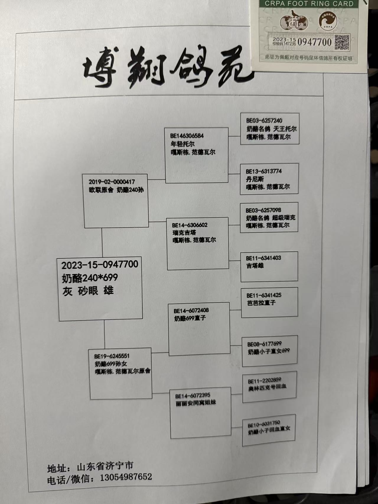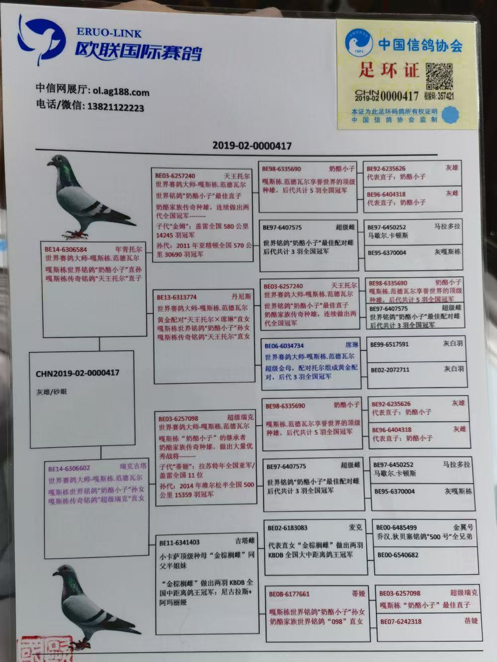 注明:5年以上的老鸽子更换环境有可能造成不能作育,请你谨慎出价