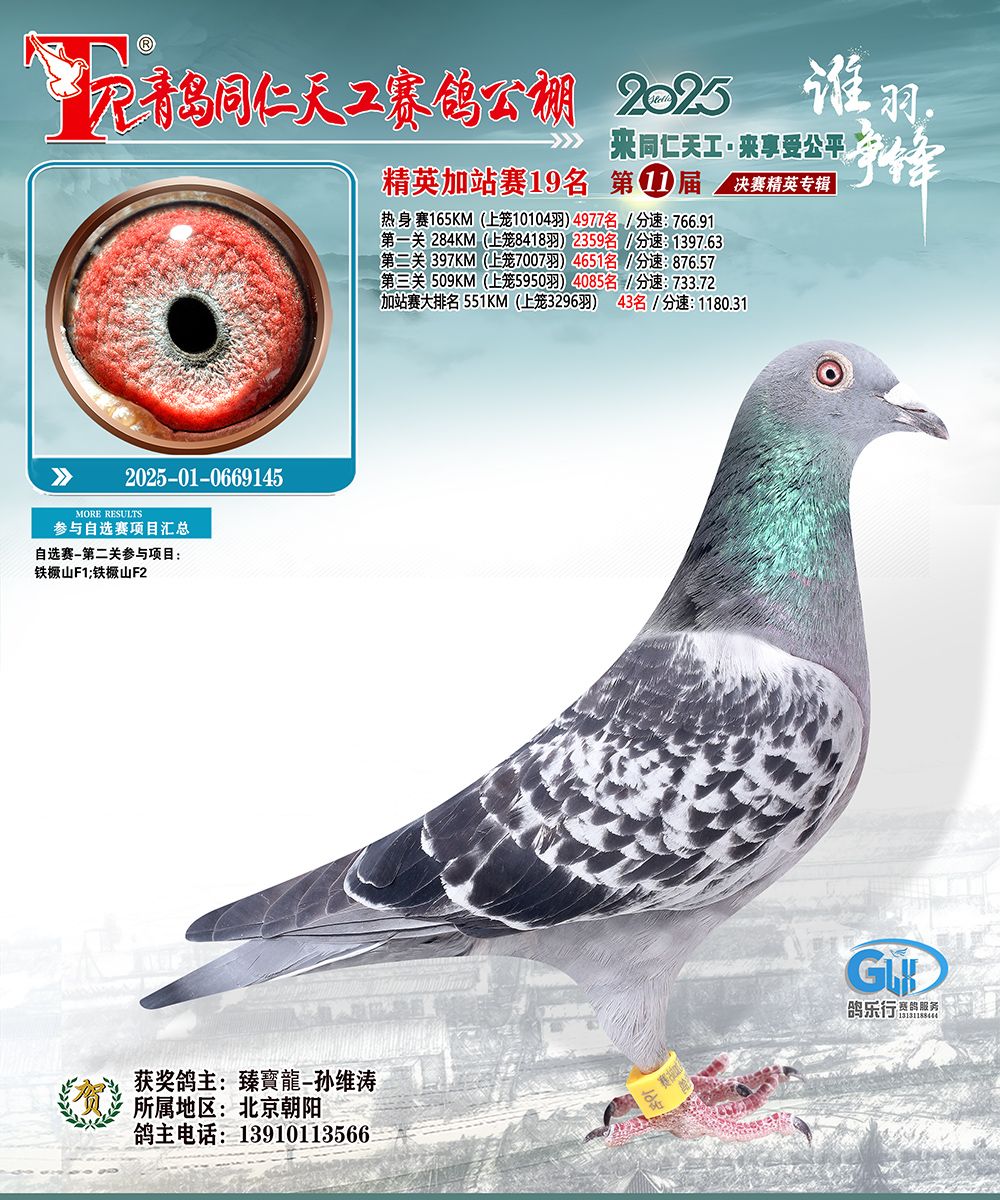 - 当前查看拍卖鸽:青岛同仁天工加站赛19名