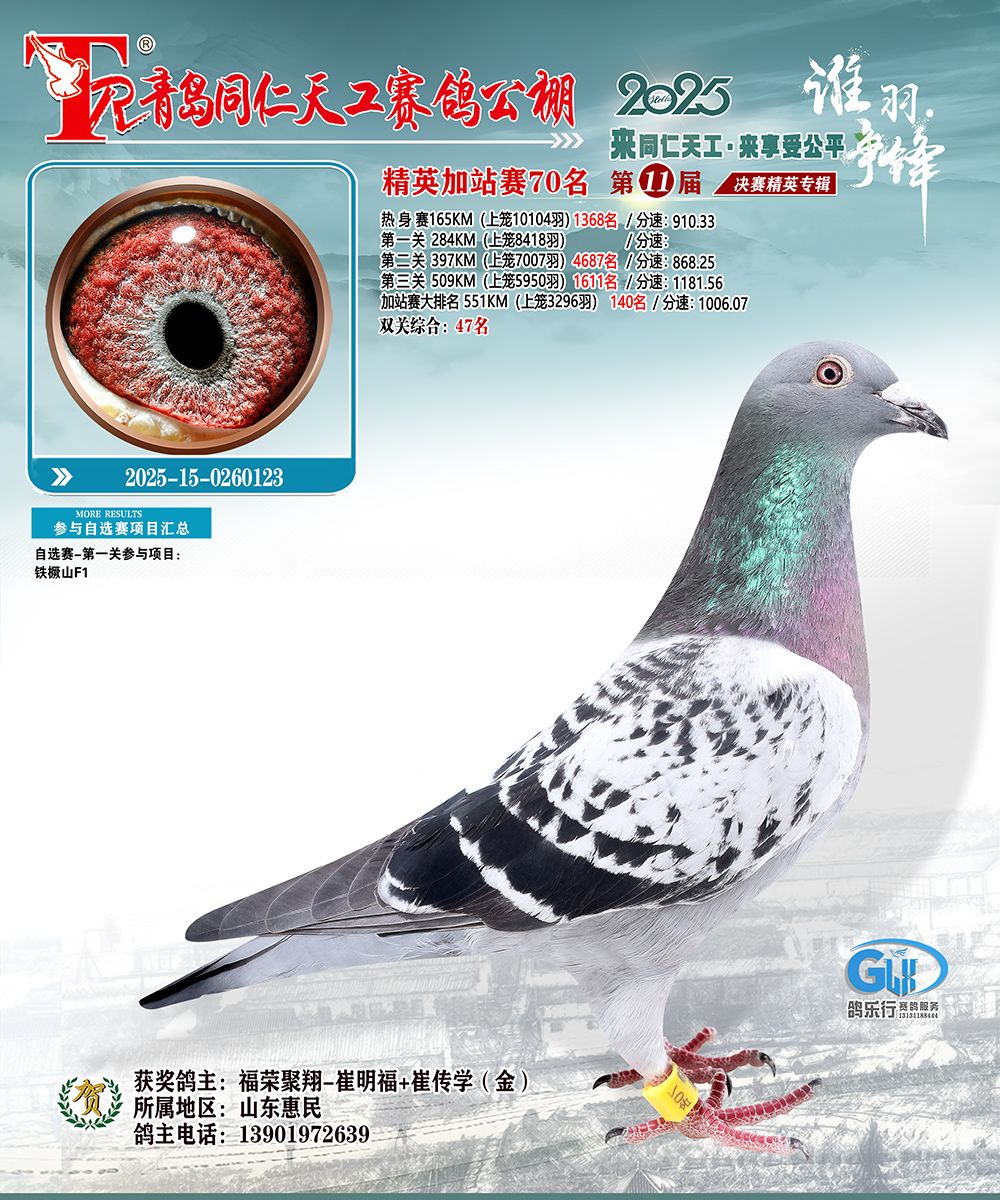 - 当前查看拍卖鸽:青岛同仁天工加站赛70名
