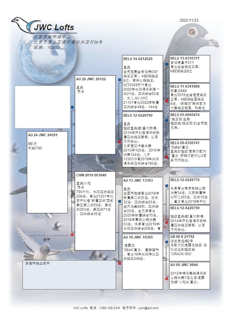 拍卖运费请加微信直接支付北京首航托运公司,微信号:13693007901,汽运及火车运输:按次数计算,每次200元,得标4羽内(含4羽)按200元计算,每增加一羽加价50元。空运:按次数计算,得标4羽内,每次按600元支付,增加一羽加价50元,如需中转加150元中转费。鸽友需自行到指定机场或可到达之长途车站取鸽。