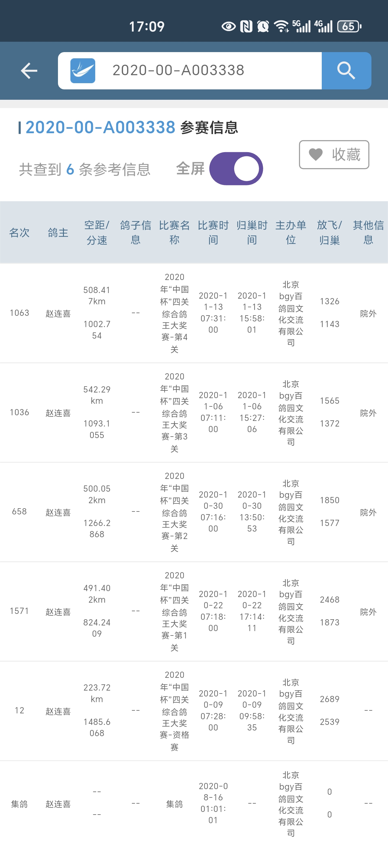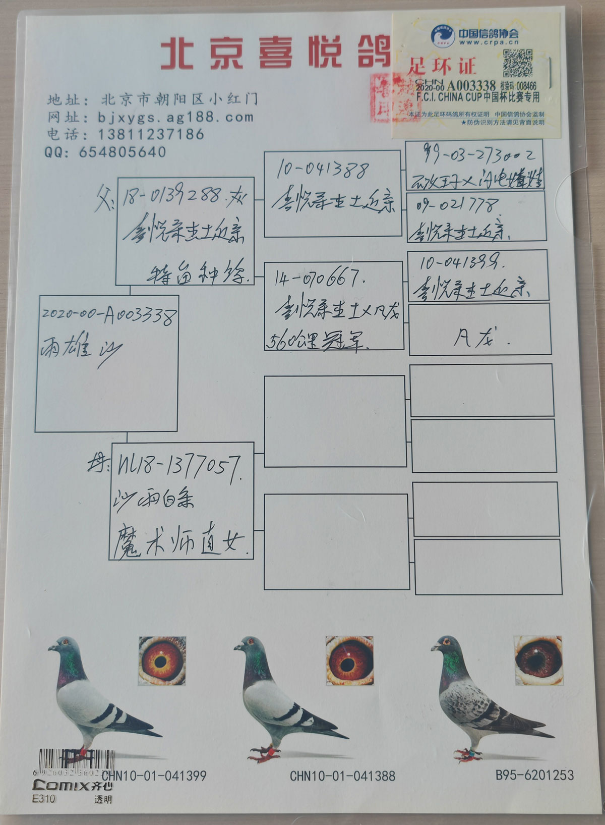 北京喜悦桑杰士,百鸽园资格赛12名338