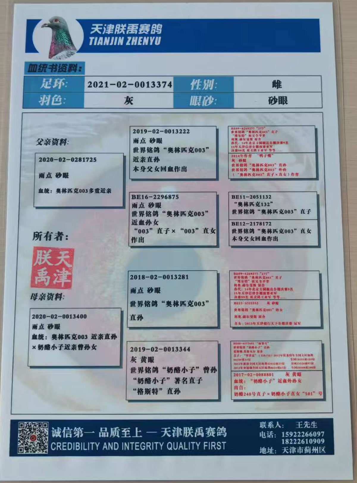 1613931 北京喜悦桑杰士,百鸽园资格赛12名338 ¥1000元 0次