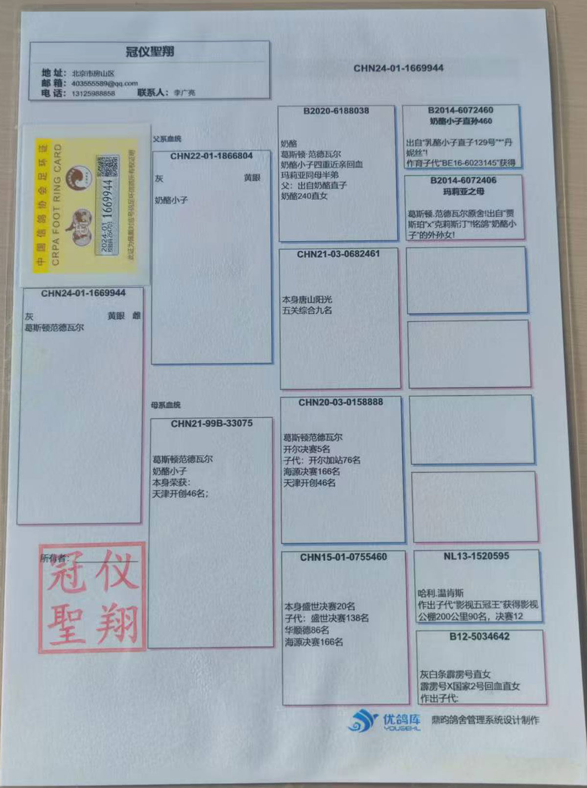 1613930 北京 李广亮 图尔斯多重近亲152 ¥1000元 0次