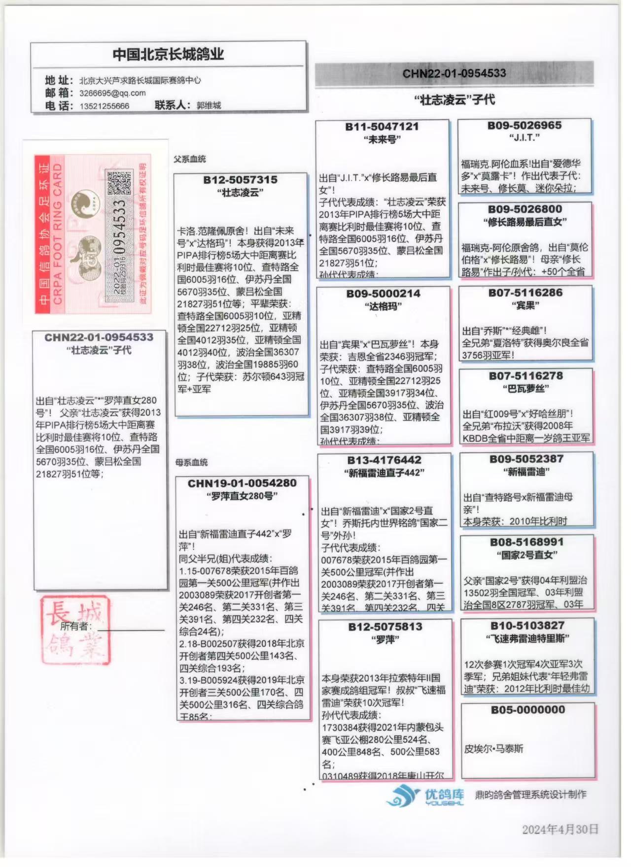 注明:5年以上的老鸽子更换环境有可能造成不能作育,请你谨慎出价