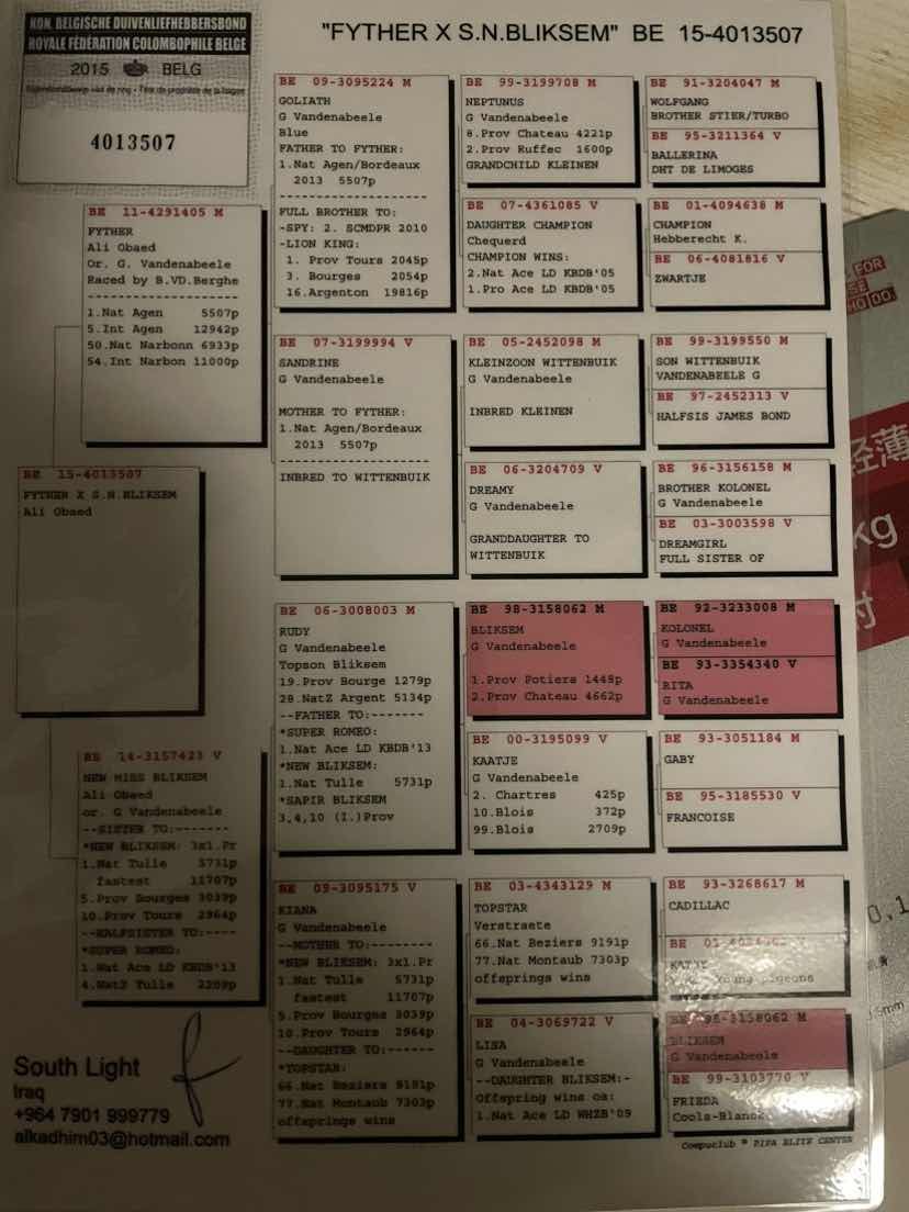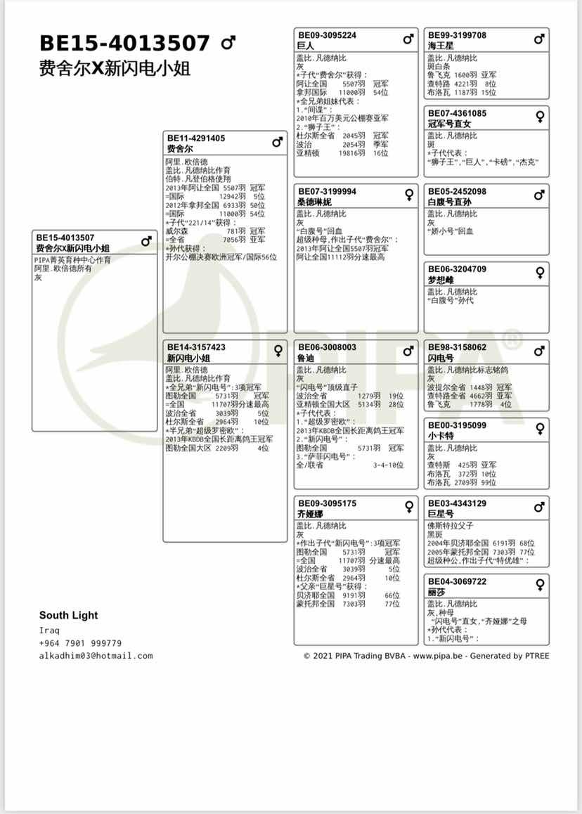 提供血统书、足环证及父母血统书复印件 当年幼鸽雌雄仅供参考,以实际雌雄为准 。