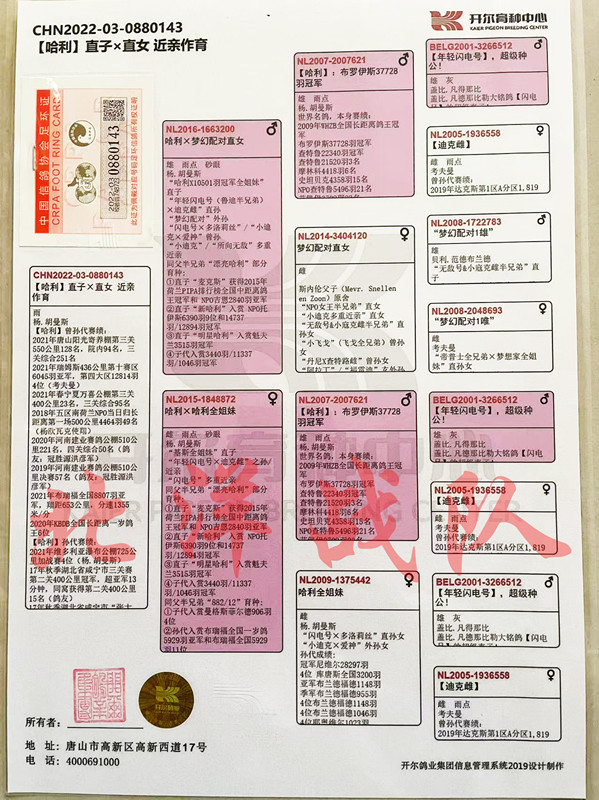 提供血统书、足环证及父母血统书复印件 当年幼鸽雌雄仅供参考,以实际雌雄为准 。