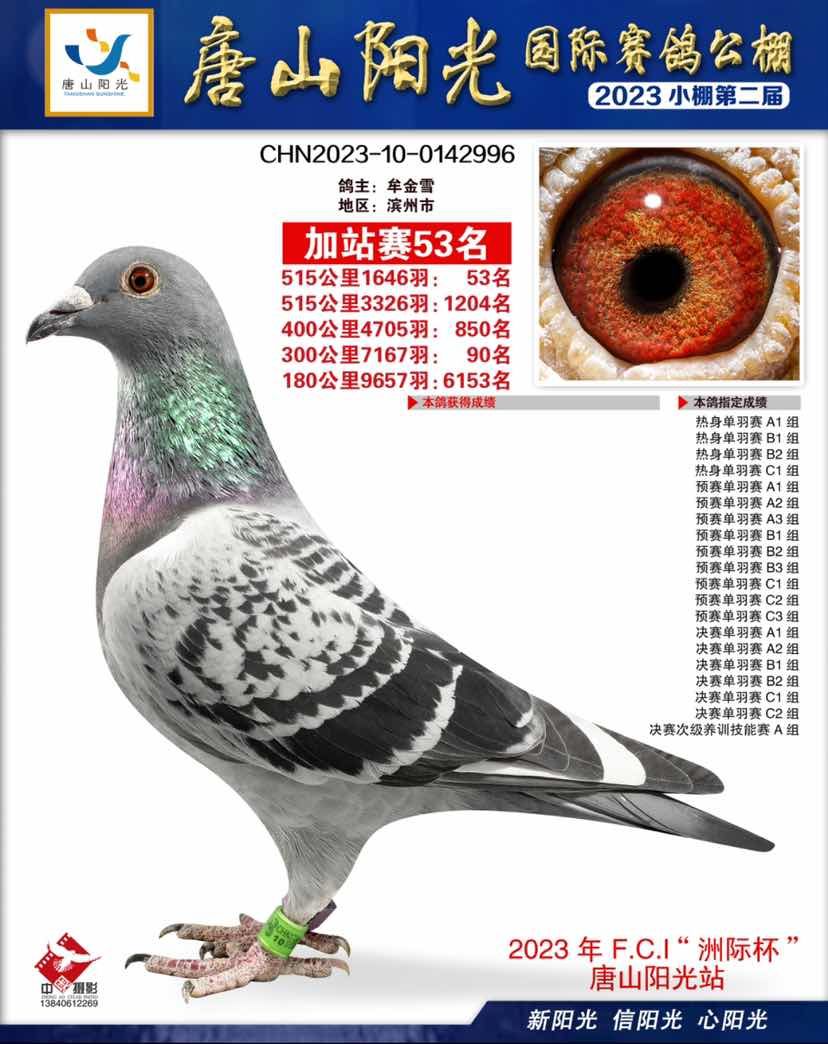 本身: 潍坊玉鑫第一关180公里2068名1002米/分(7564羽)
