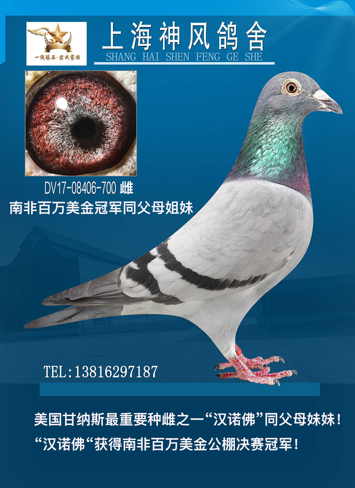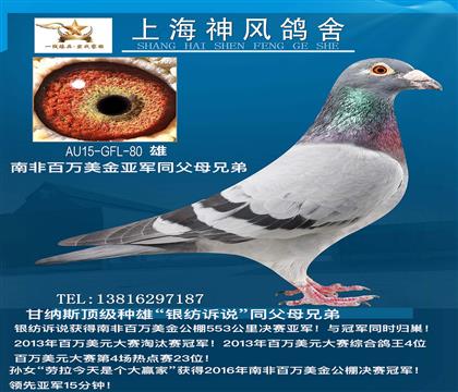 | 1615027 | 南非33孙/公棚鸽王冠军x威廉迪布恩19名 | ¥1600元 | 4次 |