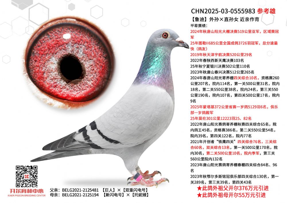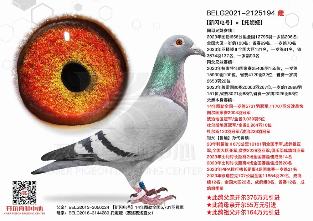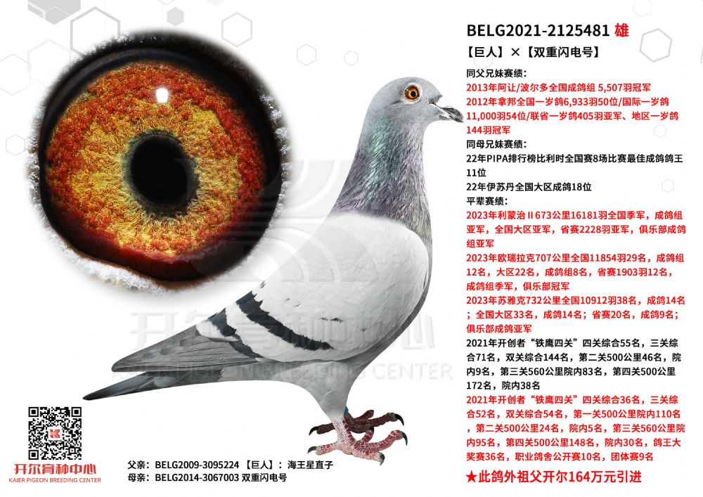 1615221 全国鸽王亚军亲弟弟971×贝拉索兰吉直女 ¥5000元 5次