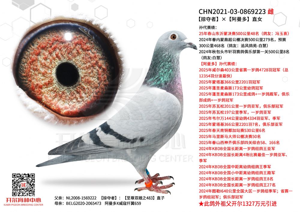 1615221 全国鸽王亚军亲弟弟971×贝拉索兰吉直女 ¥5000元 5次