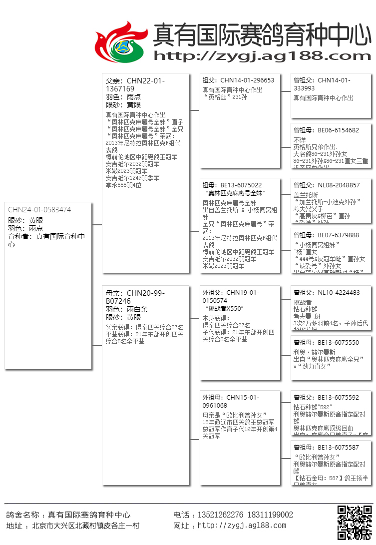 【在这三座金矿还未被世人发现之前,真有国际就第一时间把高品质的鸽子带到了国内,取得了空前的发挥。近几年大家才逐渐认识这几位大师鸽子的魅力。请记住!当任何商业鸽舍进入炒作后期的时候,他的鸽子质量与价值都会急剧下降,即便是詹森兄弟也难免于此。所以引进这家鸽舍最巅峰时期的鸽子,得以延续,才是真有国际成功的致胜法宝。】