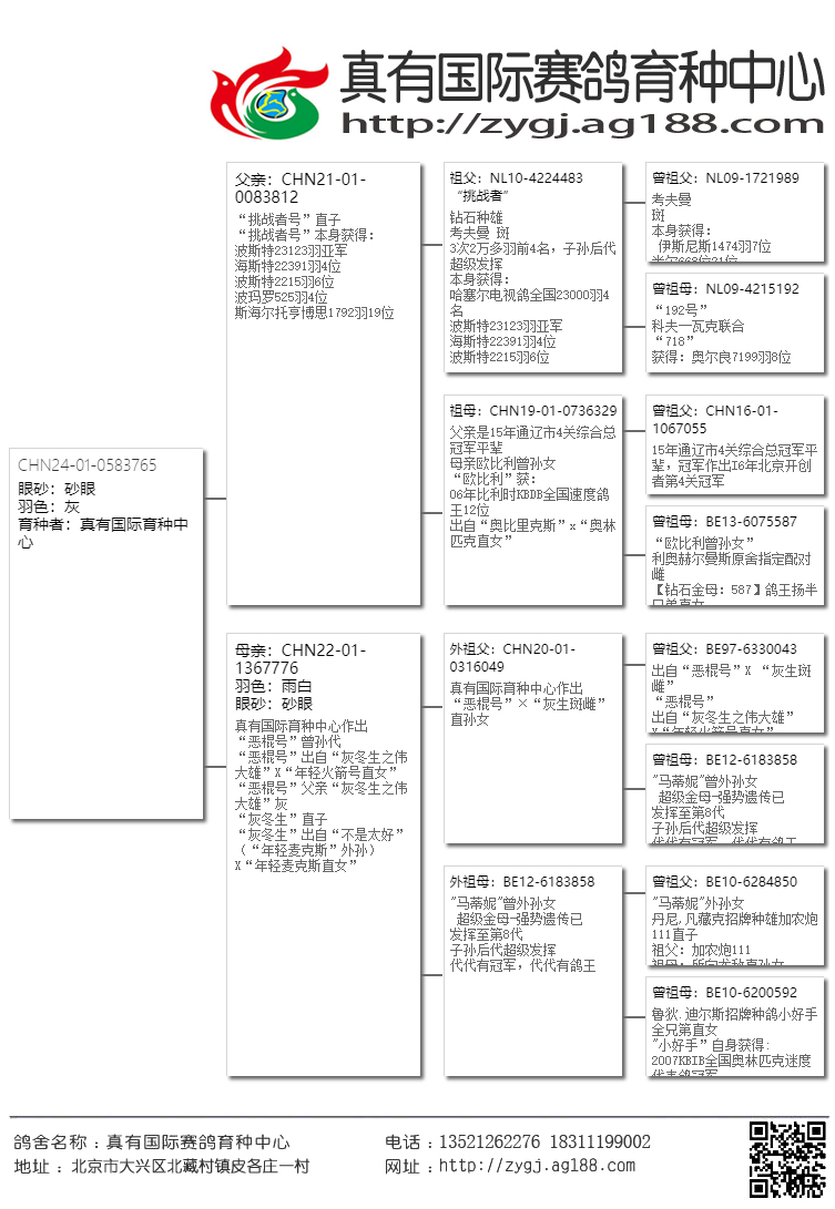 【在这三座金矿还未被世人发现之前,真有国际就第一时间把高品质的鸽子带到了国内,取得了空前的发挥。近几年大家才逐渐认识这几位大师鸽子的魅力。请记住!当任何商业鸽舍进入炒作后期的时候,他的鸽子质量与价值都会急剧下降,即便是詹森兄弟也难免于此。所以引进这家鸽舍最巅峰时期的鸽子,得以延续,才是真有国际成功的致胜法宝。】