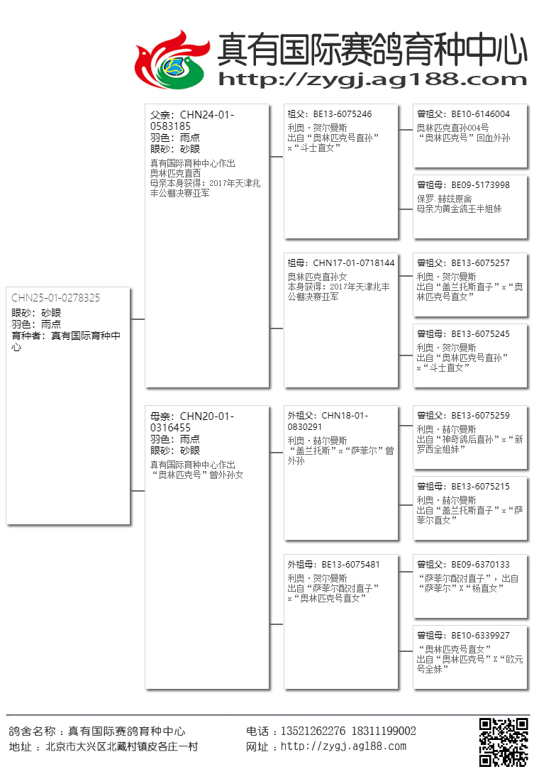 【在这三座金矿还未被世人发现之前,真有国际就第一时间把高品质的鸽子带到了国内,取得了空前的发挥。近几年大家才逐渐认识这几位大师鸽子的魅力。请记住!当任何商业鸽舍进入炒作后期的时候,他的鸽子质量与价值都会急剧下降,即便是詹森兄弟也难免于此。所以引进这家鸽舍最巅峰时期的鸽子,得以延续,才是真有国际成功的致胜法宝。】