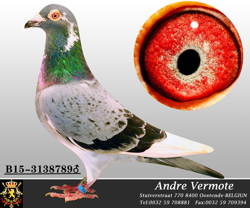 父亲“凯莱尼号”为安德烈勃默德原舍作育超级近种鸽,本身多次获奖(300-1100公里):17年巴塞罗那7429羽国家赛313位