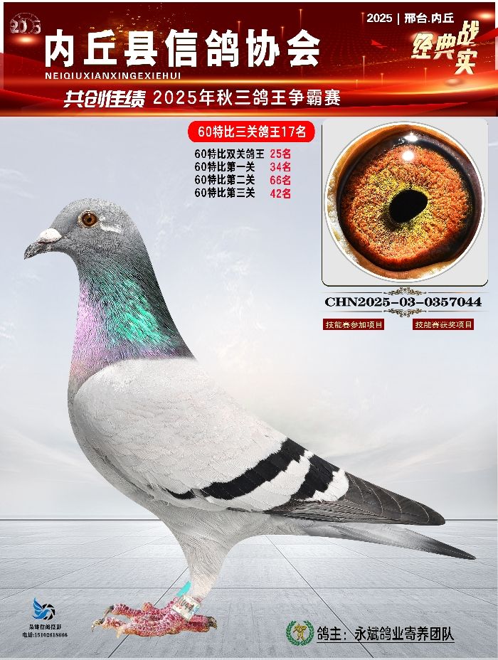 | 1615844 | 60特比三关鸽王亚军 精英赛冠军 | ¥400元 | 3次 |