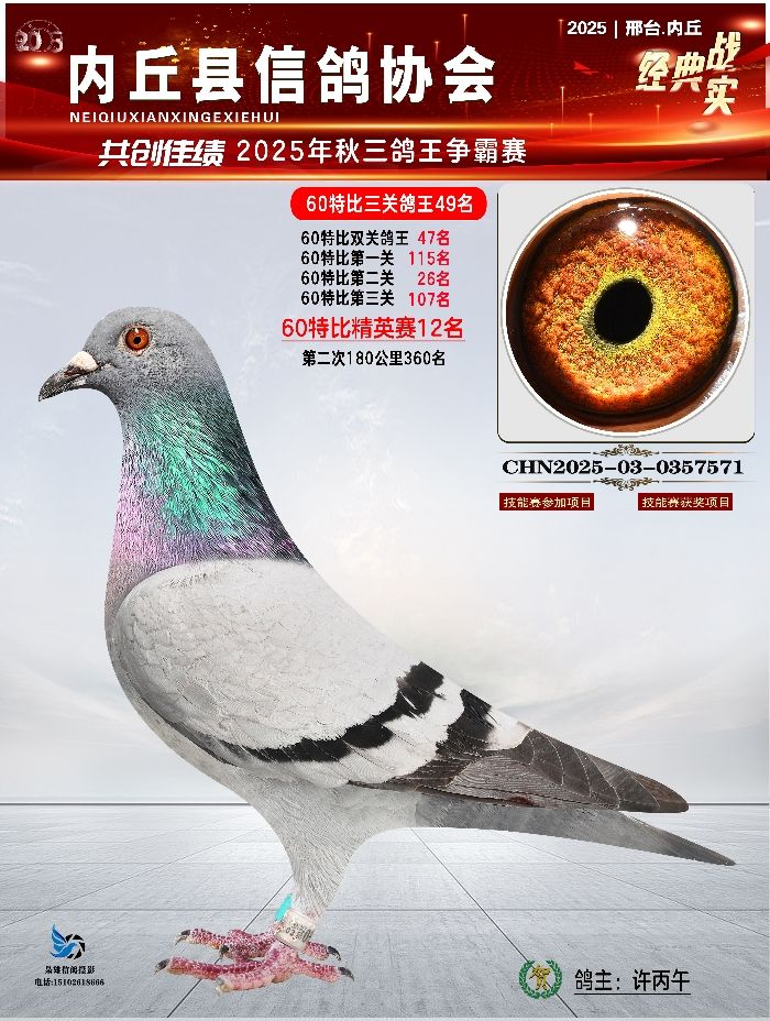 | 1615844 | 60特比三关鸽王亚军 精英赛冠军 | ¥400元 | 3次 |