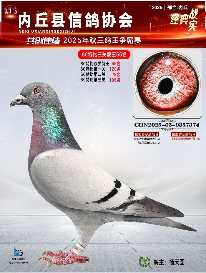 | 1615844 | 60特比三关鸽王亚军 精英赛冠军 | ¥400元 | 3次 |