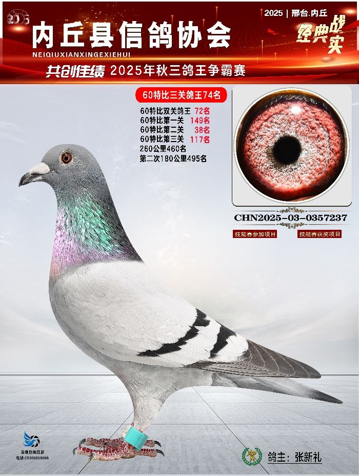 | 1615870 | 60特比三关鸽王57名 | ¥200元 | 0次 |
