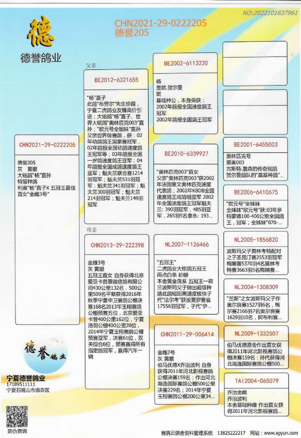 - 当前查看拍卖鸽:德誉鸽业 鸽王杨-0222205