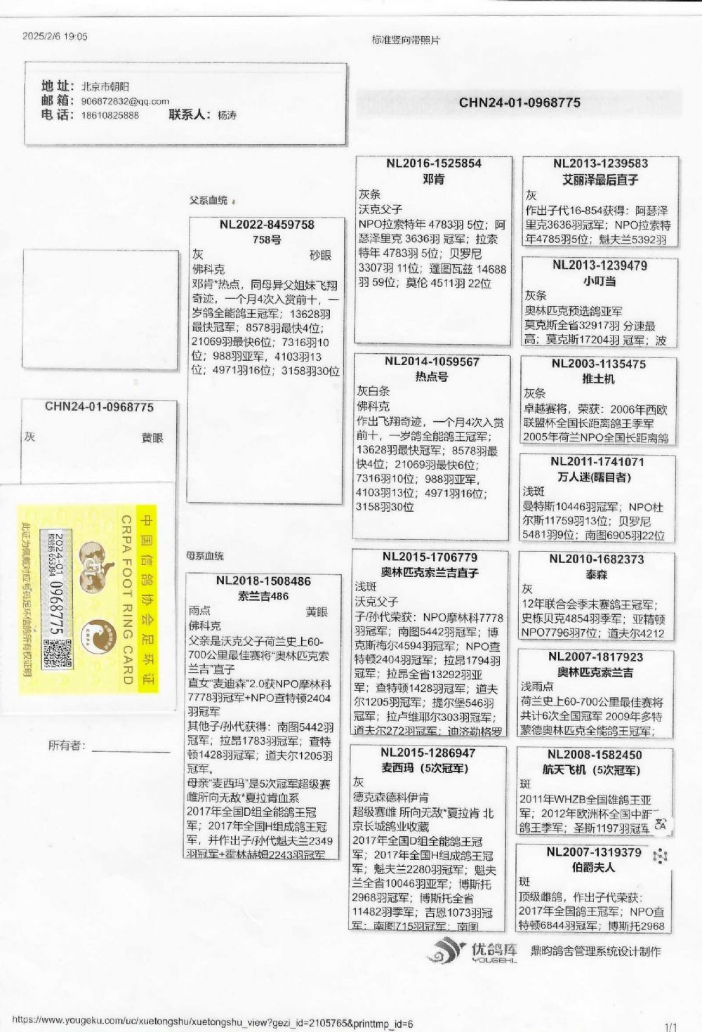 | 1617293 | 金友赛鸽 公棚165名-0006815 | ¥600元 | 2次 |