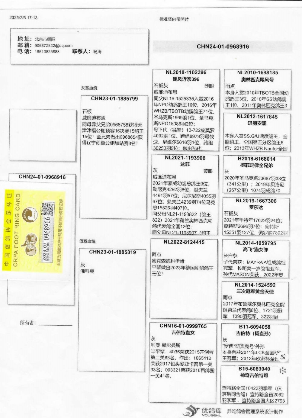 | 1617299 | 高治民 鸽王杨-1915431 | ¥300元 | 1次 |