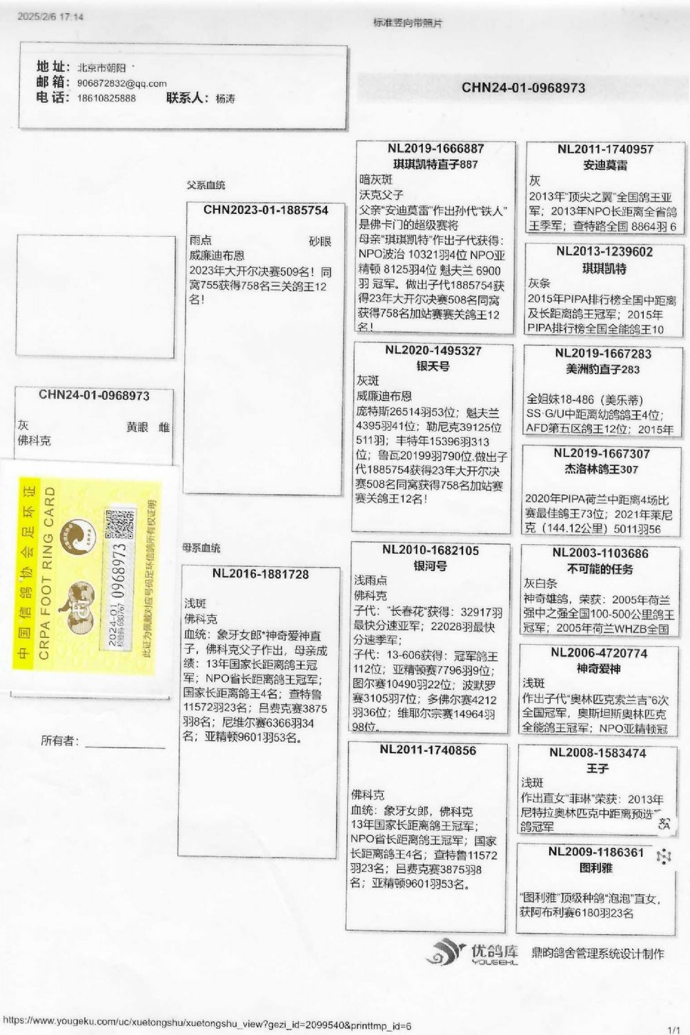 | 1617299 | 高治民 鸽王杨-1915431 | ¥300元 | 1次 |
