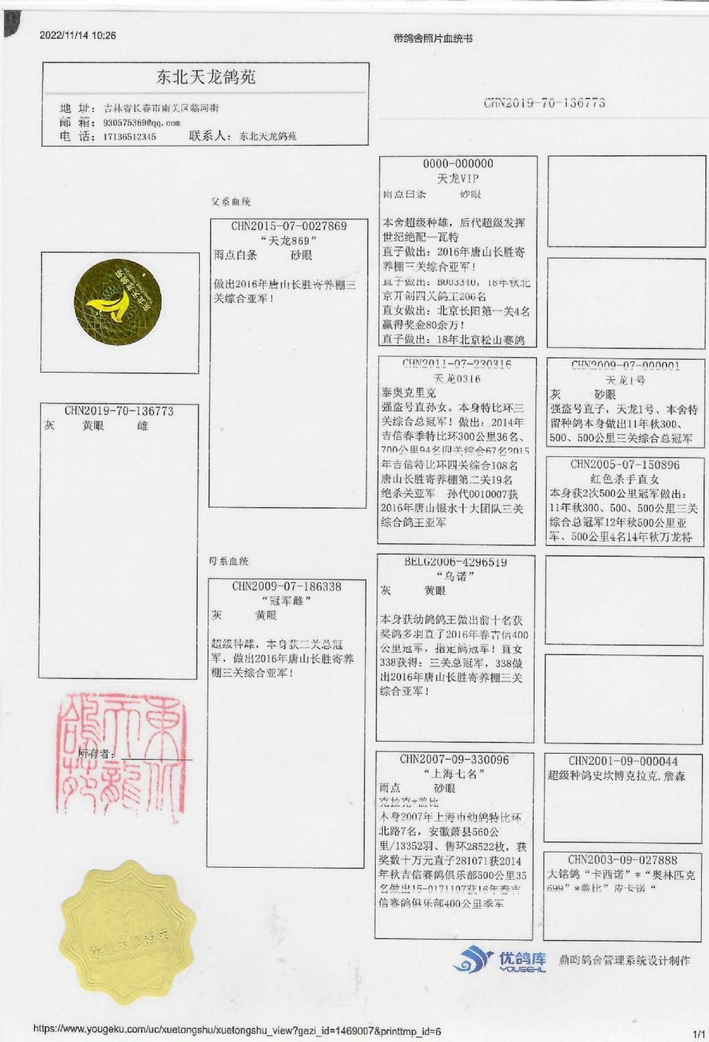 - 当前查看拍卖鸽:东北天龙鸽苑-136773