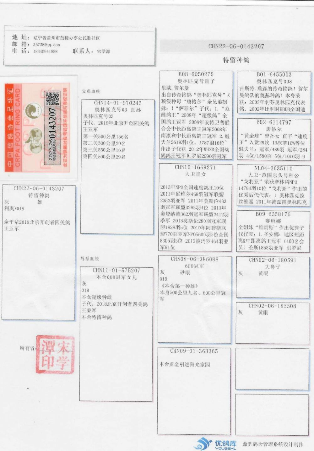 - 当前查看拍卖鸽:宋学谭 600冠军-0143207