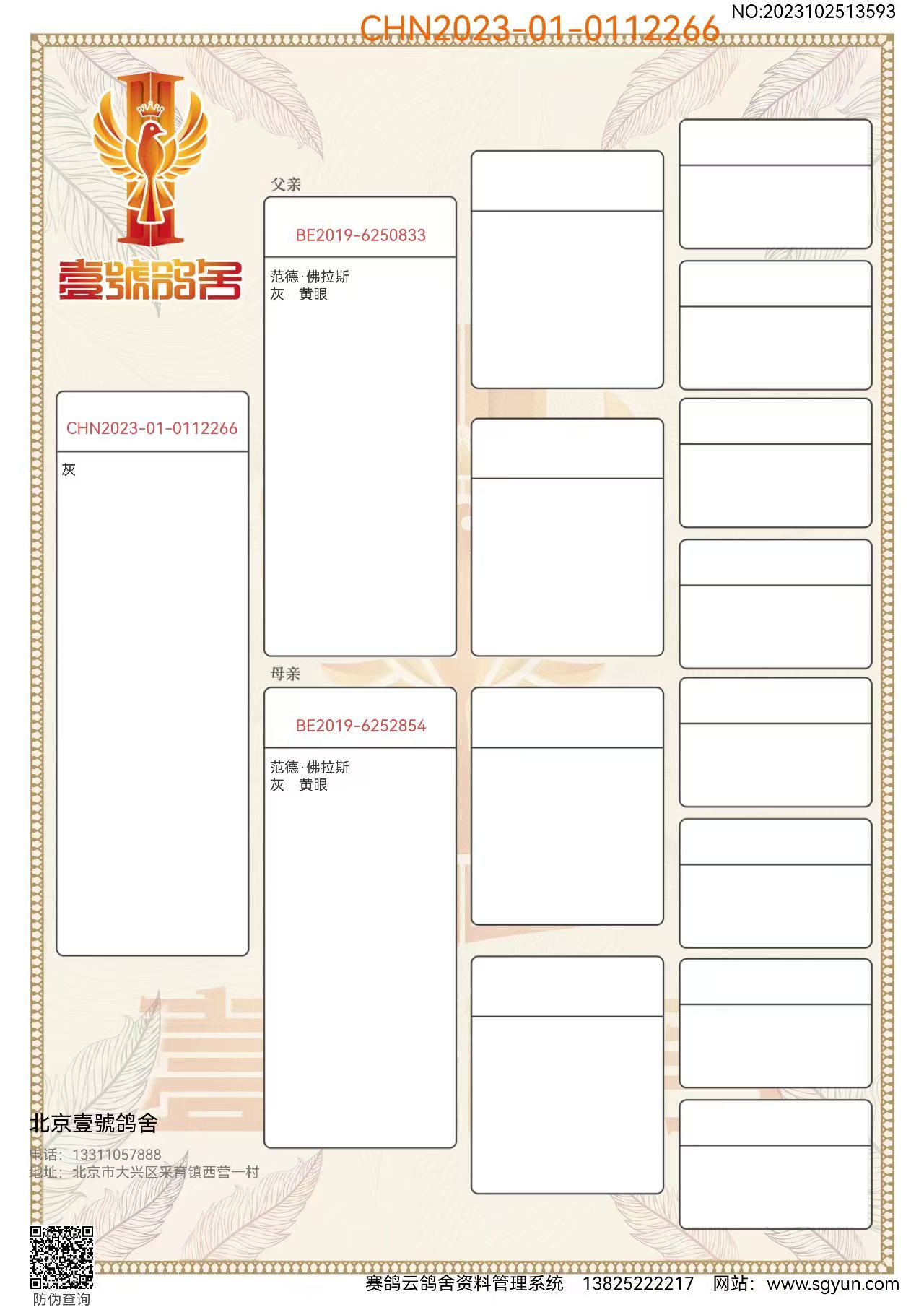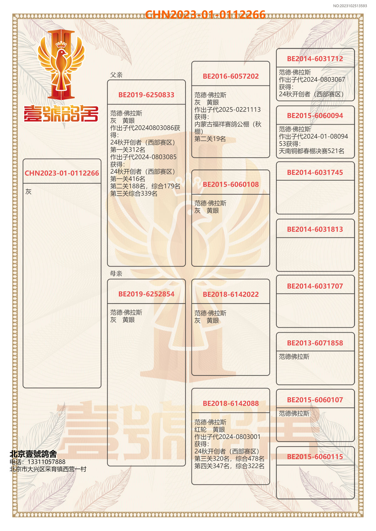 - 当前查看拍卖鸽:北京壹号鸽舍张斌:范德佛拉斯266
