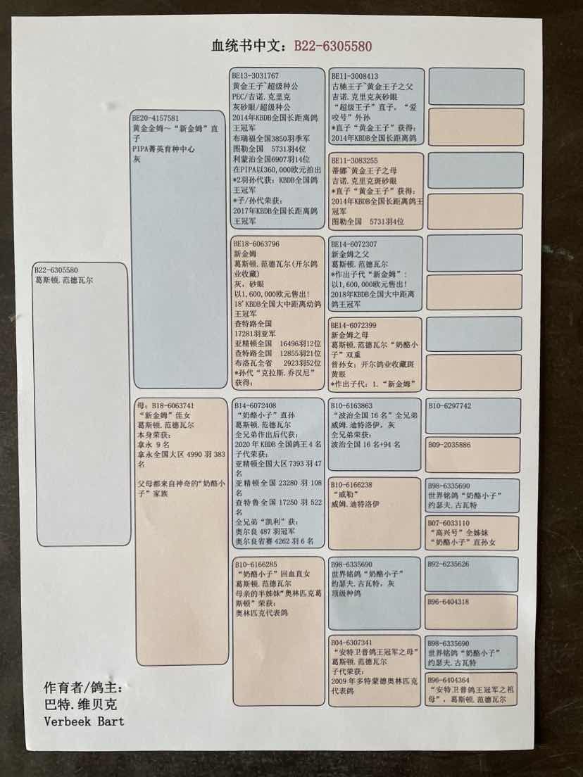 - 当前查看拍卖鸽:黄金王子新金姆直孙奶酪小子曾孙