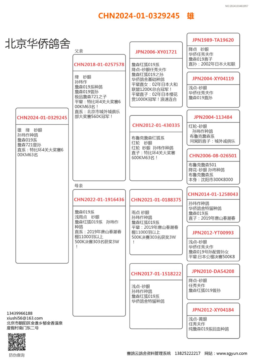 | 1617726 | 10号--詹森系018 直系: 石家庄金霸公棚赛500K亚军 | ¥1200元 | 0次 |