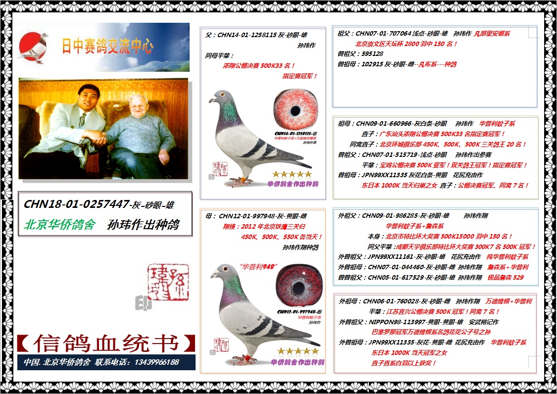 - 当前查看拍卖鸽:1号--凡布里安娜447直系:浓翔公棚决